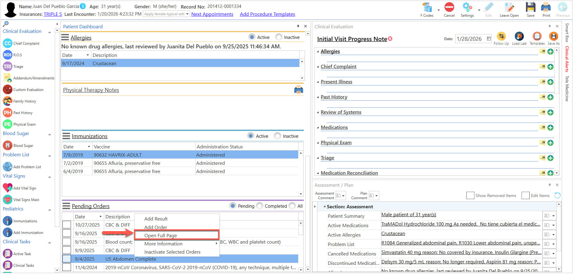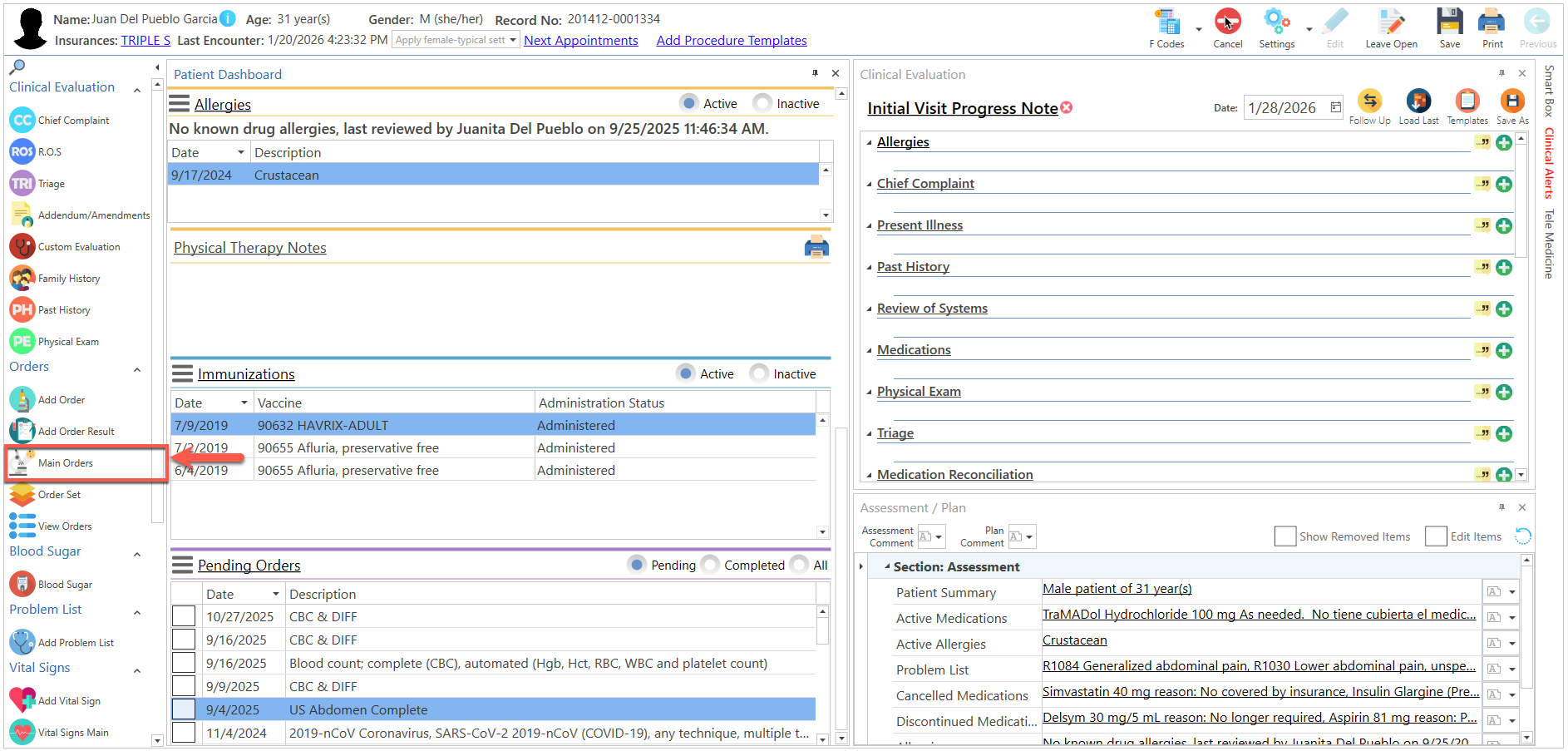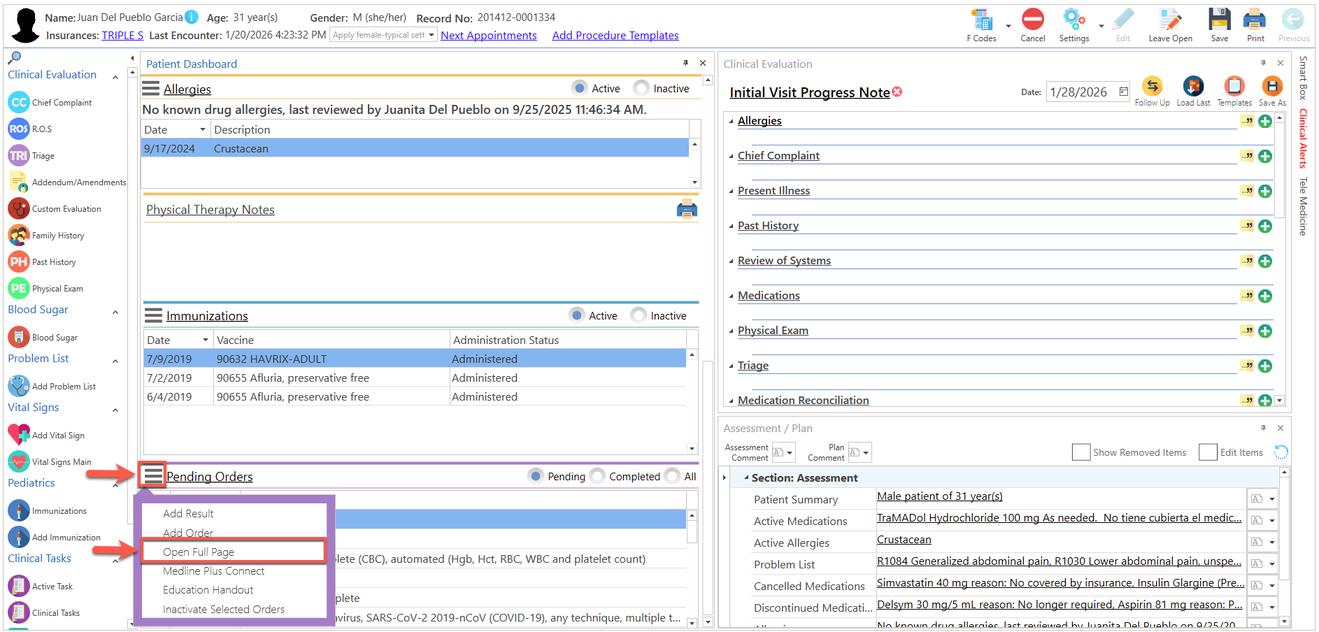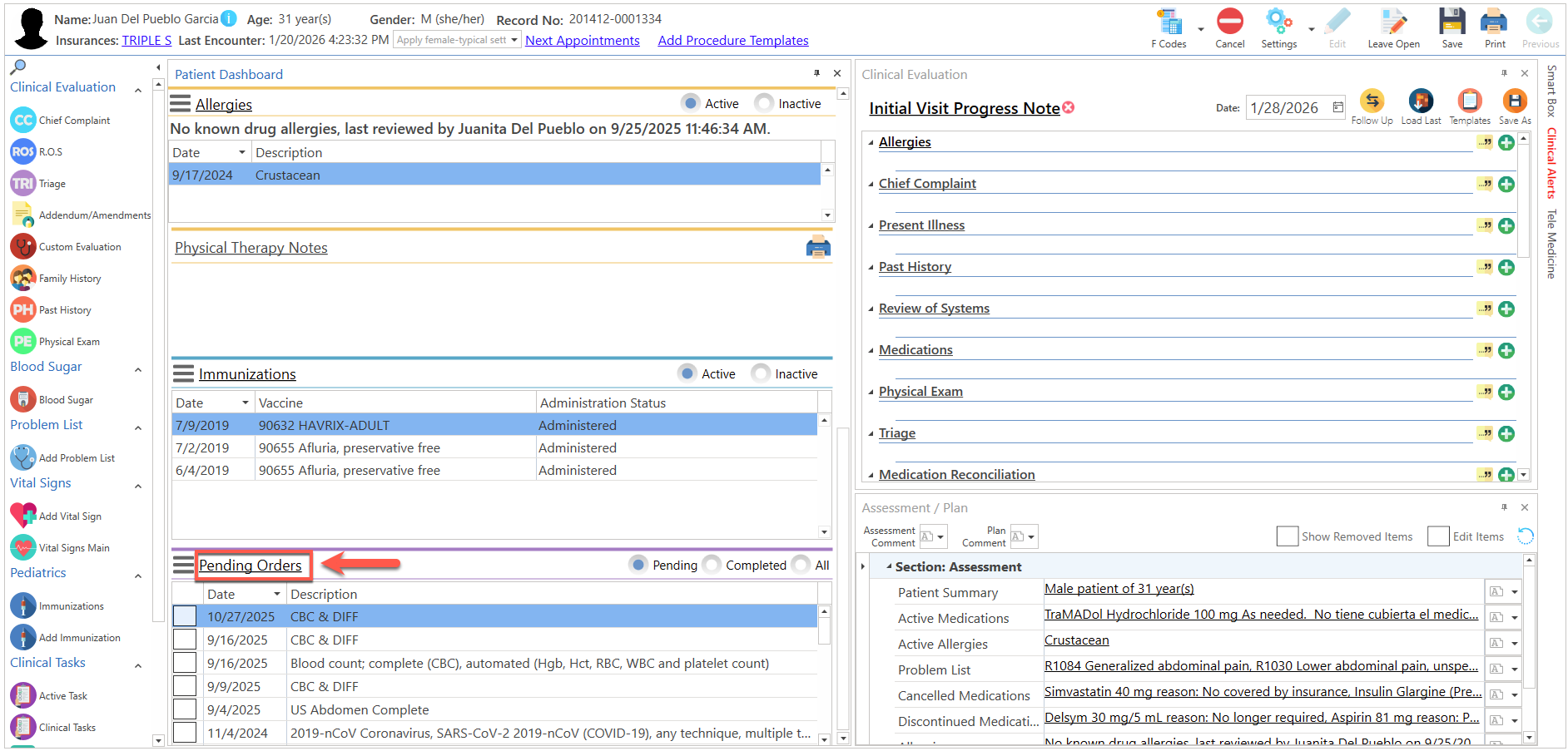 - Presione sobre el enlace de "Pending Orders", en la sección del "Patient Dashboard".