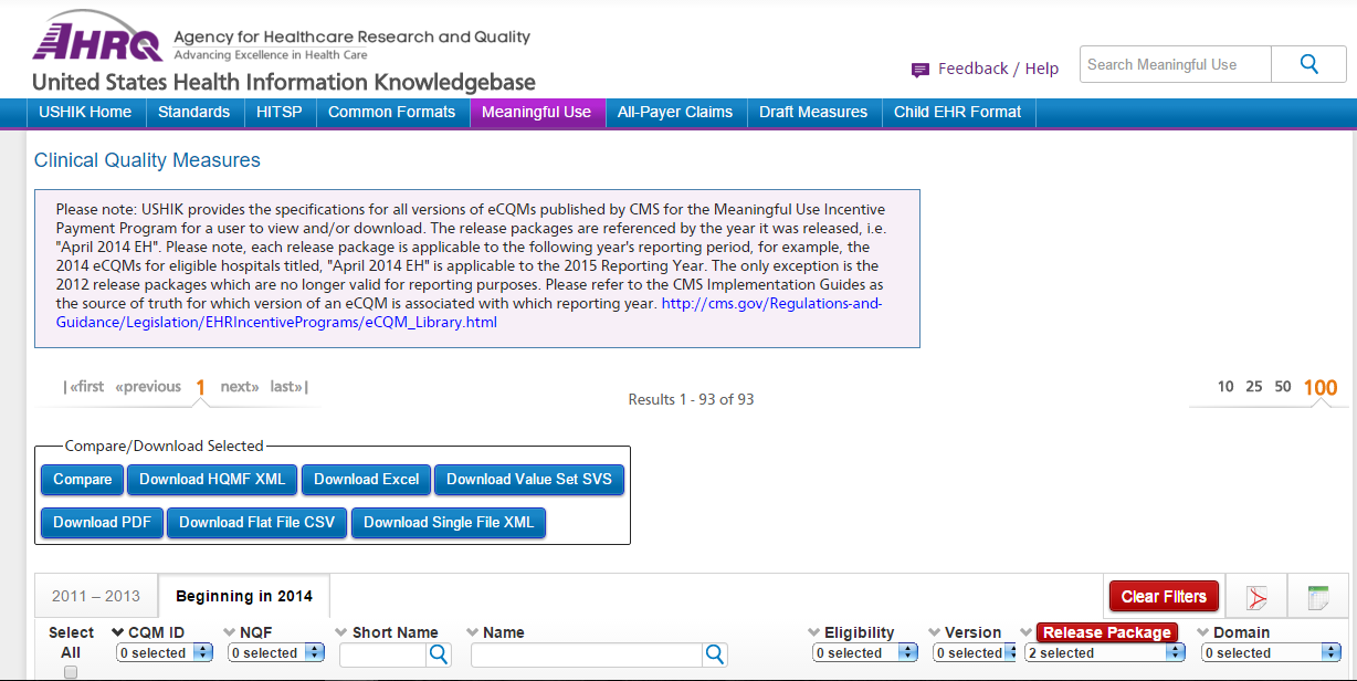 - Press the Meaningful Use link and then Clinical Quality Mesure. (See Image).
