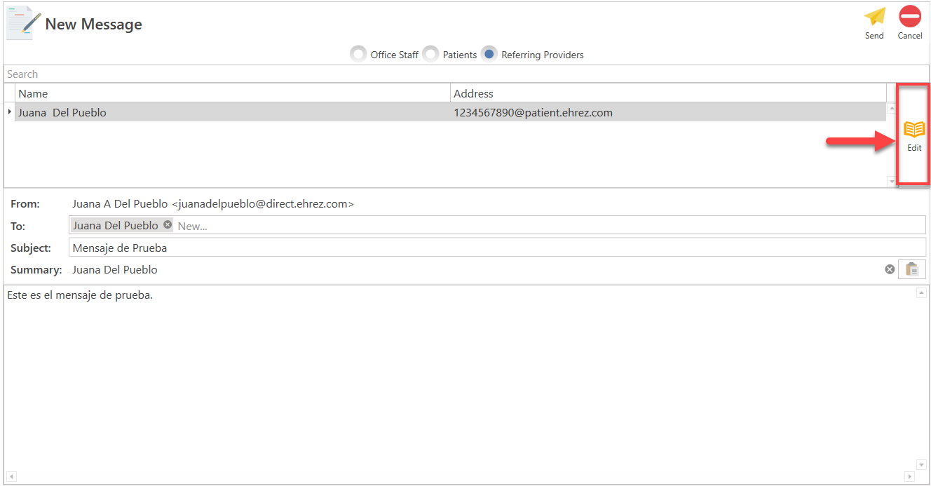 - Should the provider you wish to message be absent from the list, click the Edit button situated on the screen's right side.