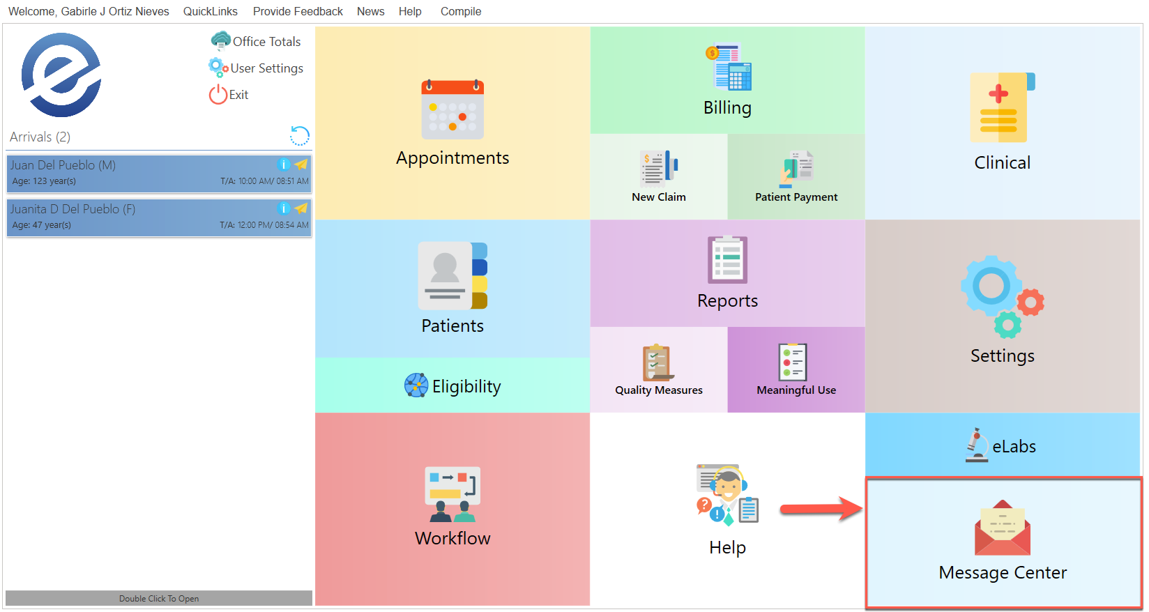 - Double-click on the patient's name to send them a message.