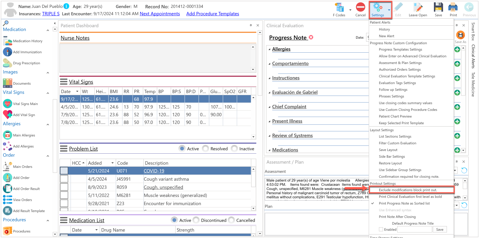 - Una vez el paciente es seleccionado, presione el botón de "Settings", localizado en la parte superior de la pantalla.