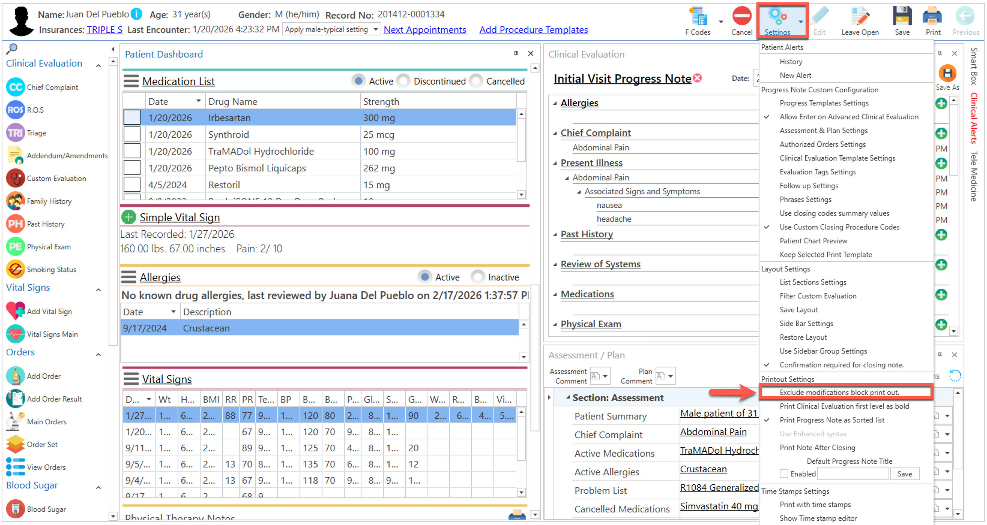 - Seleccione la opción de "Exclude modifications block print out", en la sección de "Printout Settings".