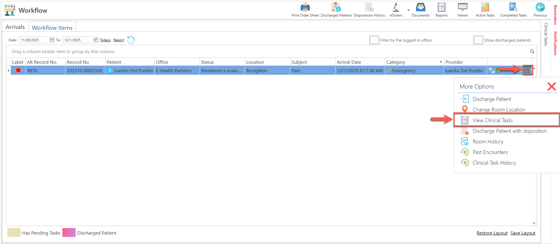 • Presione la pestaña de "Clinical Tasks", localizada en la parte derecha de la pantalla.