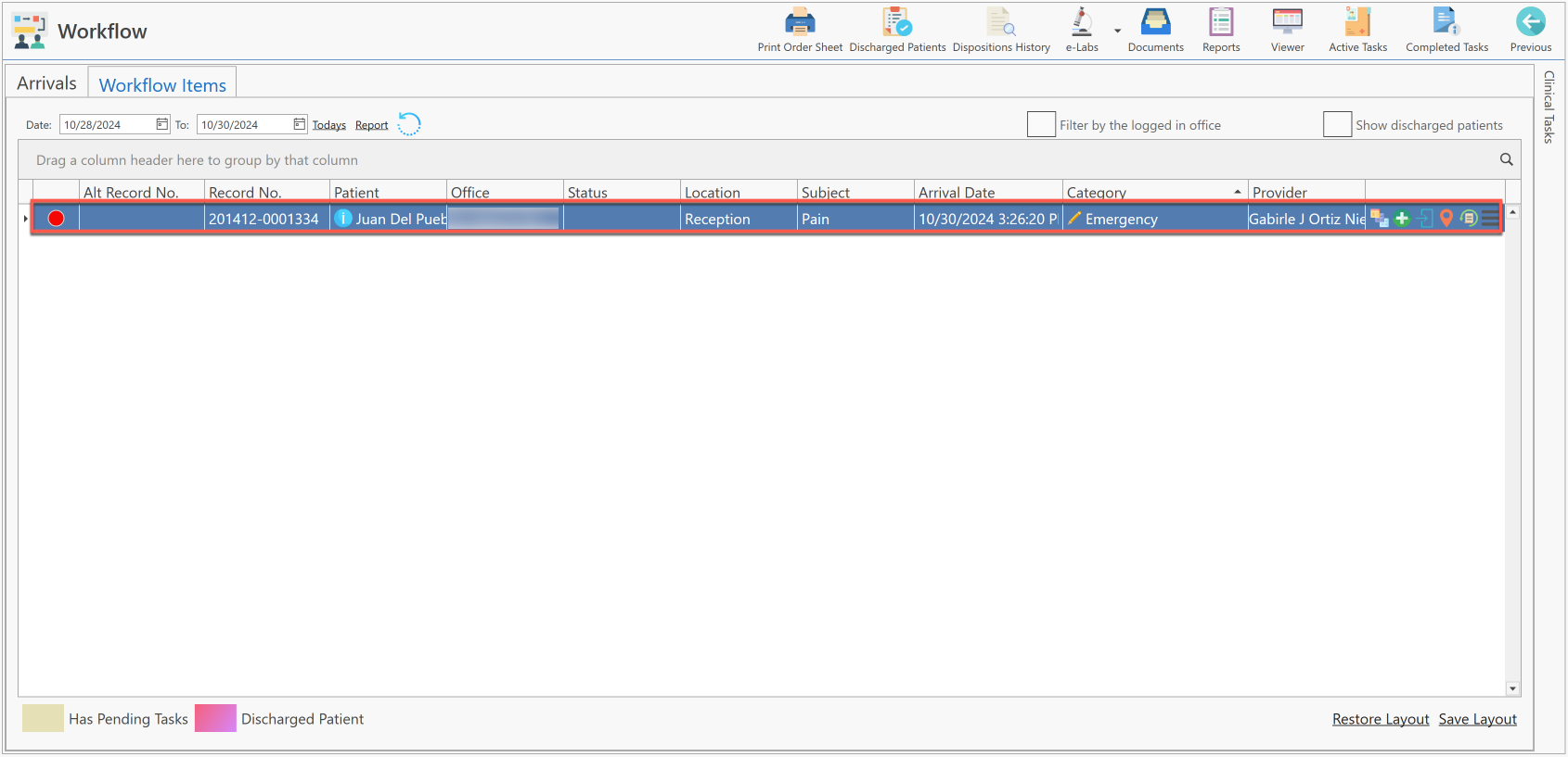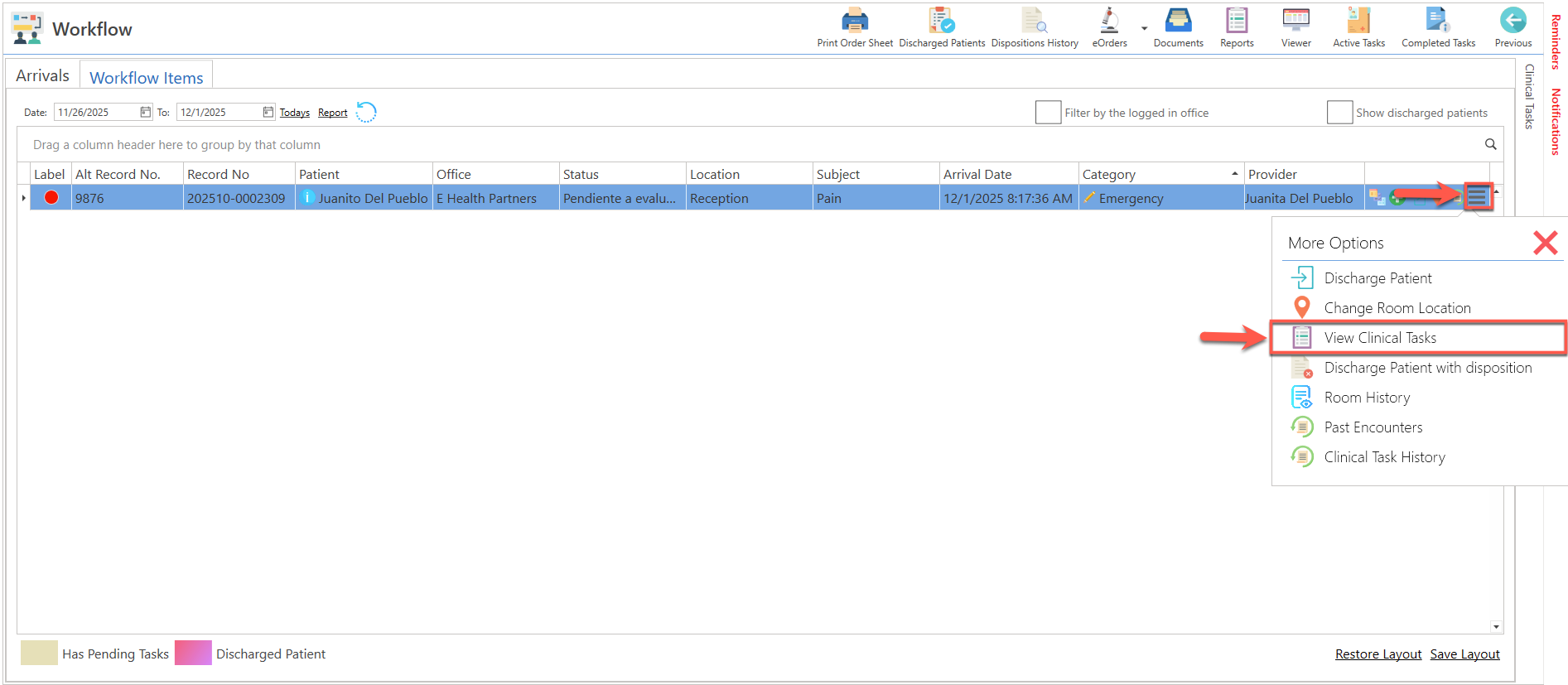 - Presione la pestaña de "Clinical Tasks", localizada en la parte derecha de la pantalla.
