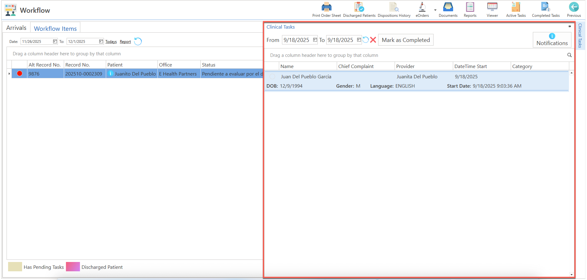 - Presione la pestaña de "Clinical Tasks", localizada en la parte derecha de la pantalla.
