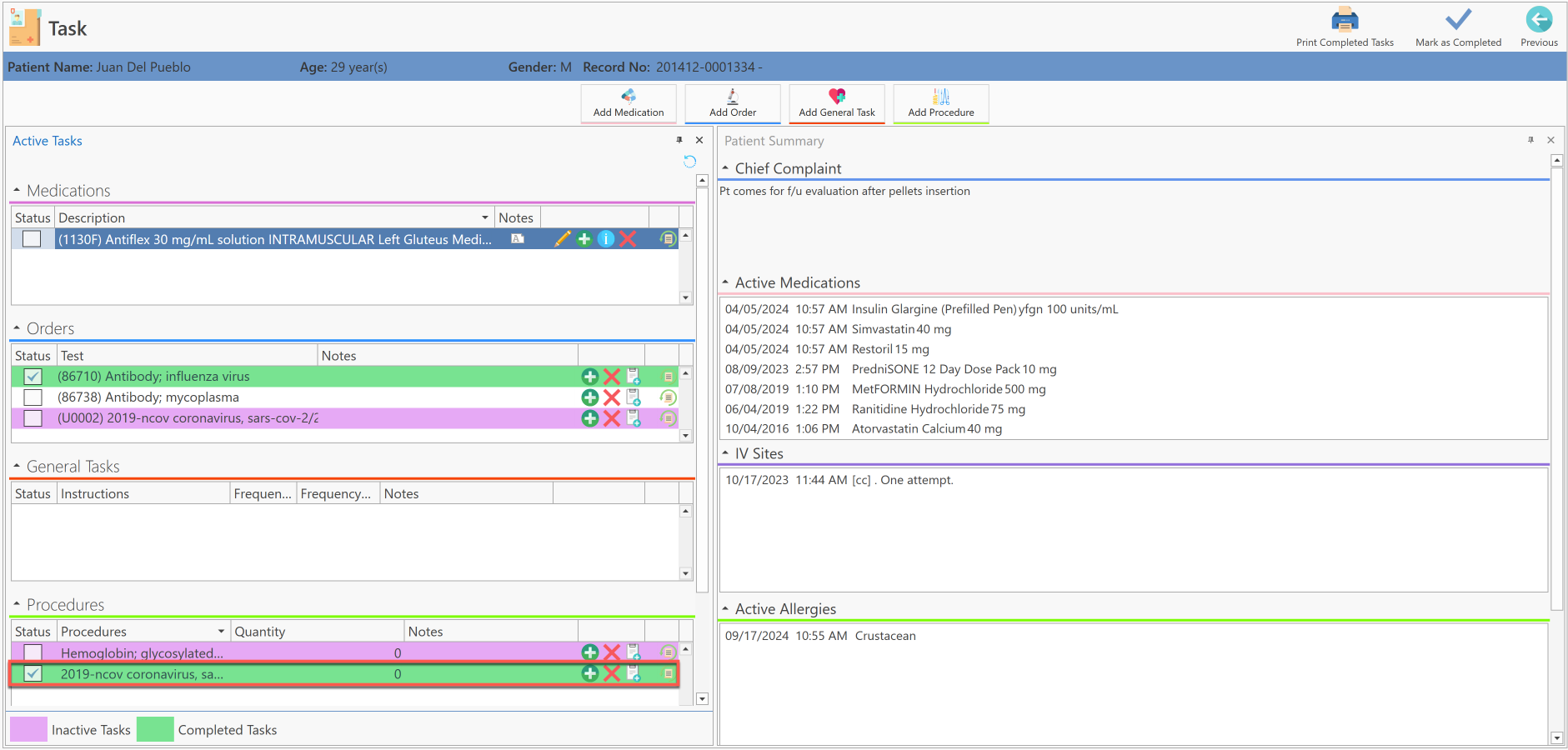 - Seleccione la opción de "View Clinical Tasks".