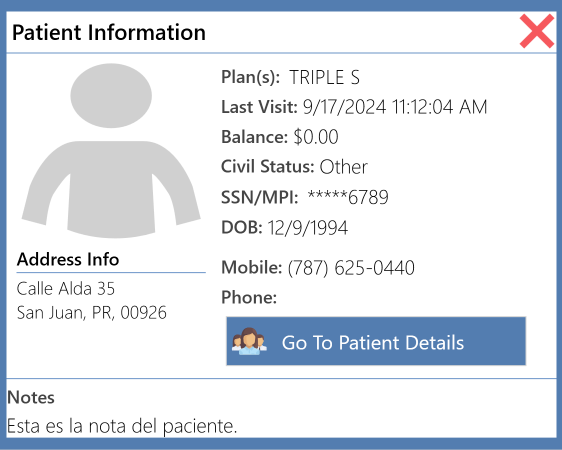 - Link: (Insurances): Click on this link to access the patient's medical plan information.