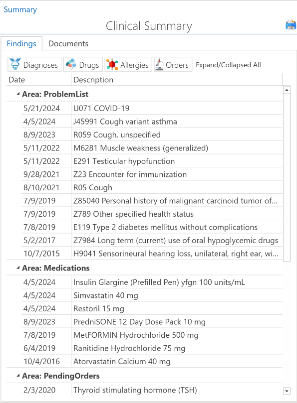 [Summary Tab]: In the tab, the patient's clinical summary will be displayed.