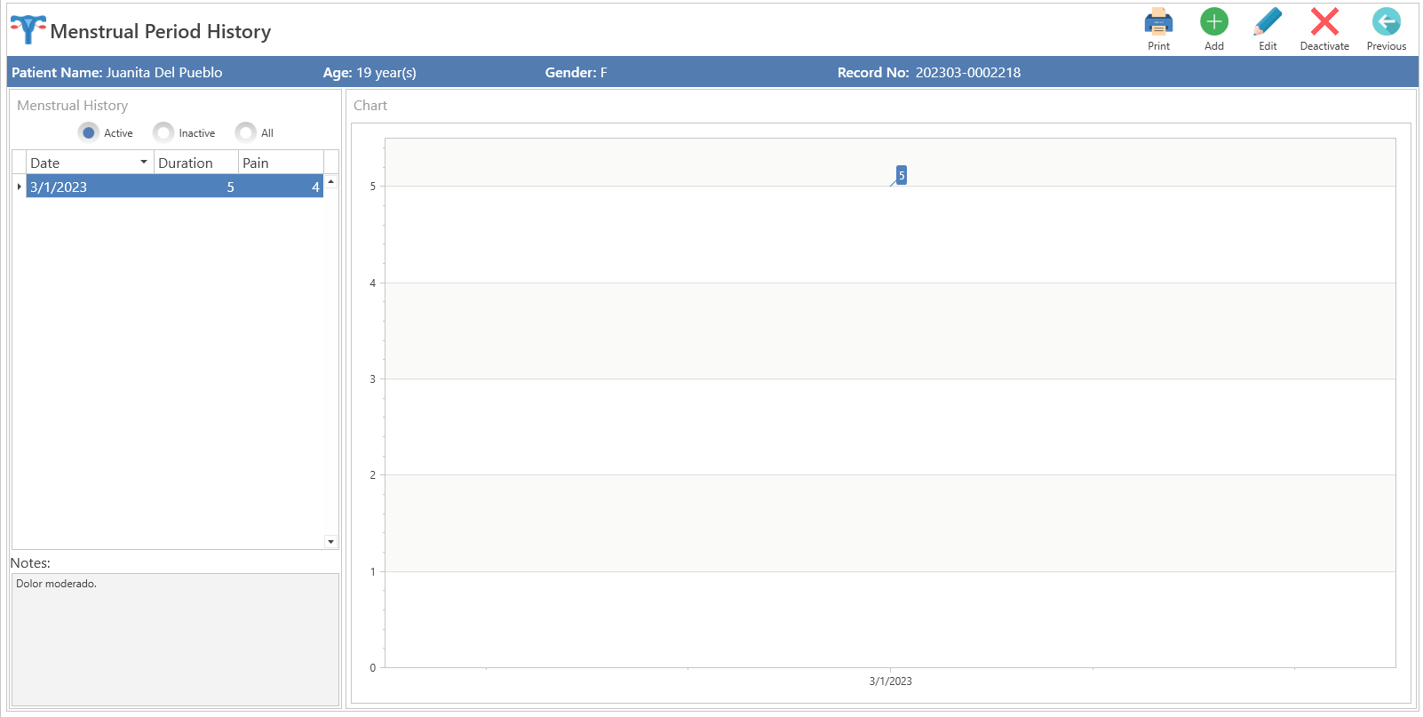 Menstrual History: Screen where the history of the menstrual period can be documented. Recommended Article: Advanced Progress Note / Menstrual History