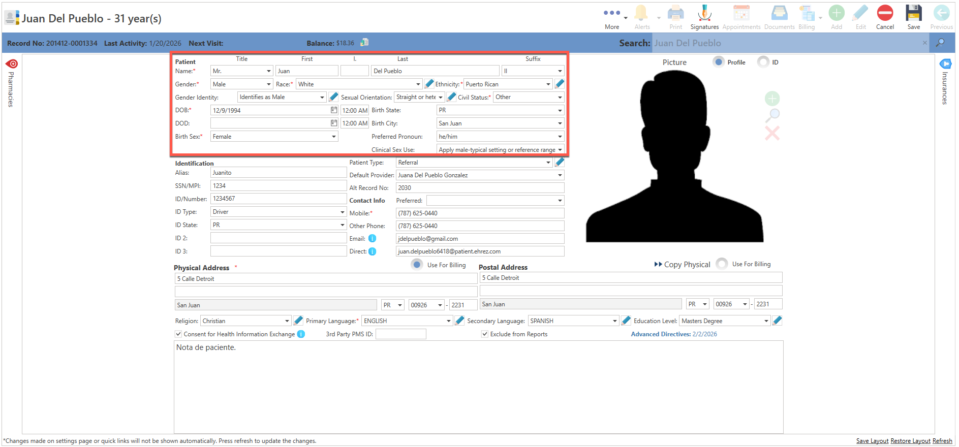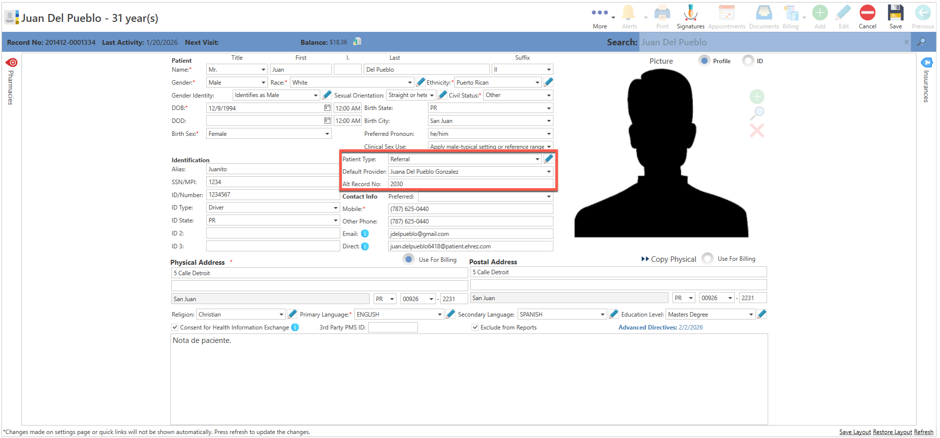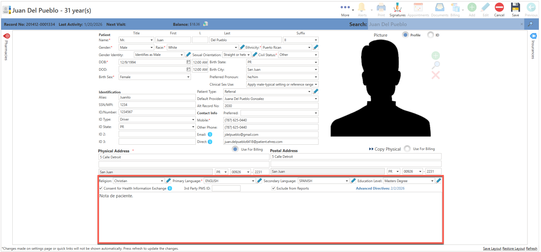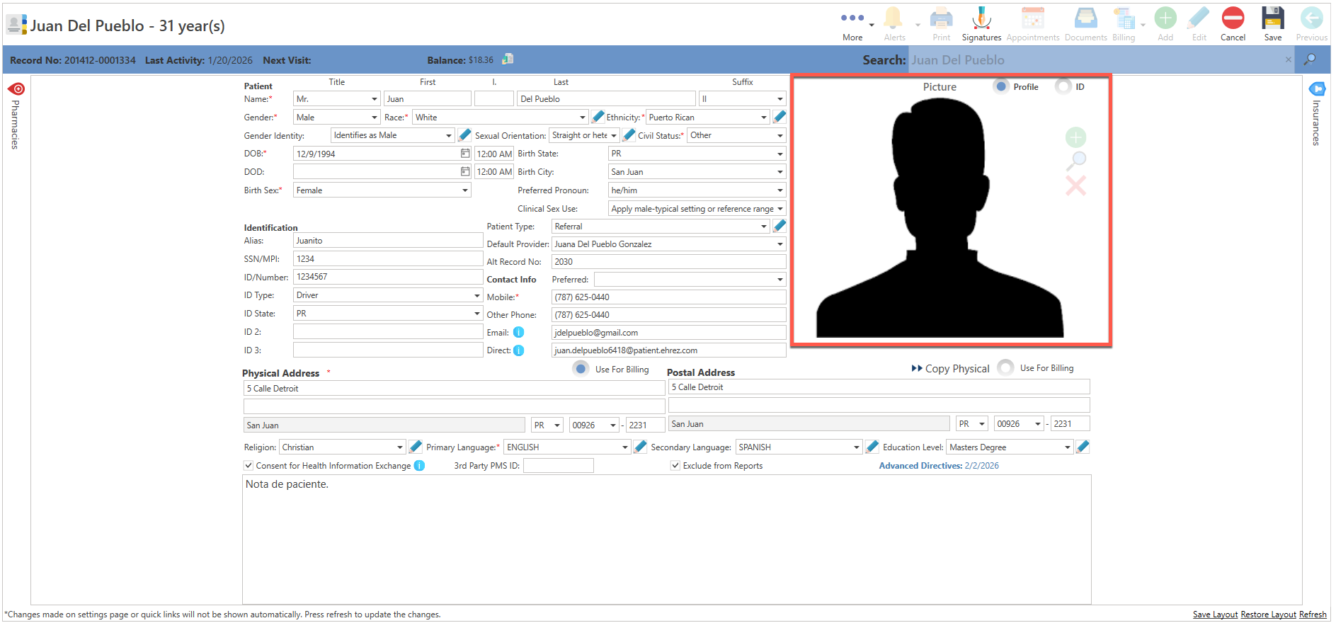 - Id Picture: Permite agregar, una imagen del paciente. (Ejemplo: Licencia de conducir.)