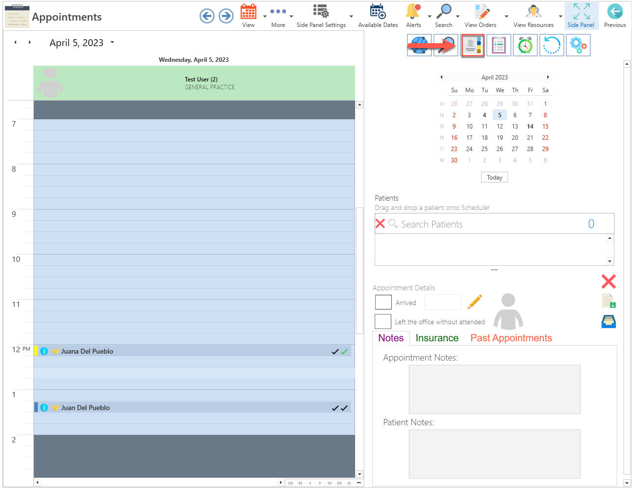 - Select the Patient Details button, which is situated on the right side of the screen within the Side Panel section.
