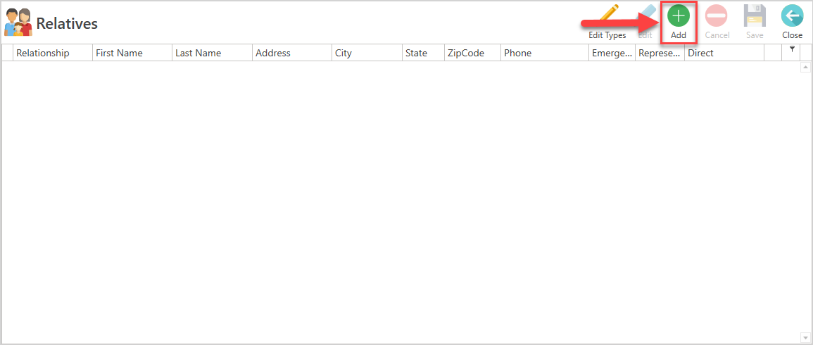 - Select the patient, to whom you want to add a relative or family member.