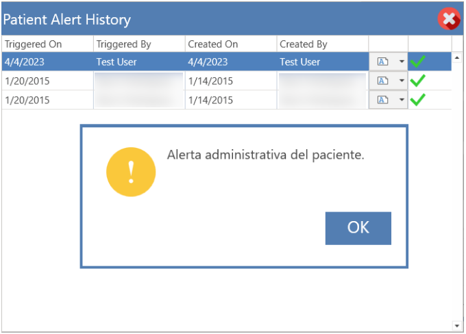 - Presione el botón de "Yes" para el despliegue y manejo de todas las alertas del paciente seleccionado, de presionar el botón de "No", se desplegarán las alertas de todos los pacientes.