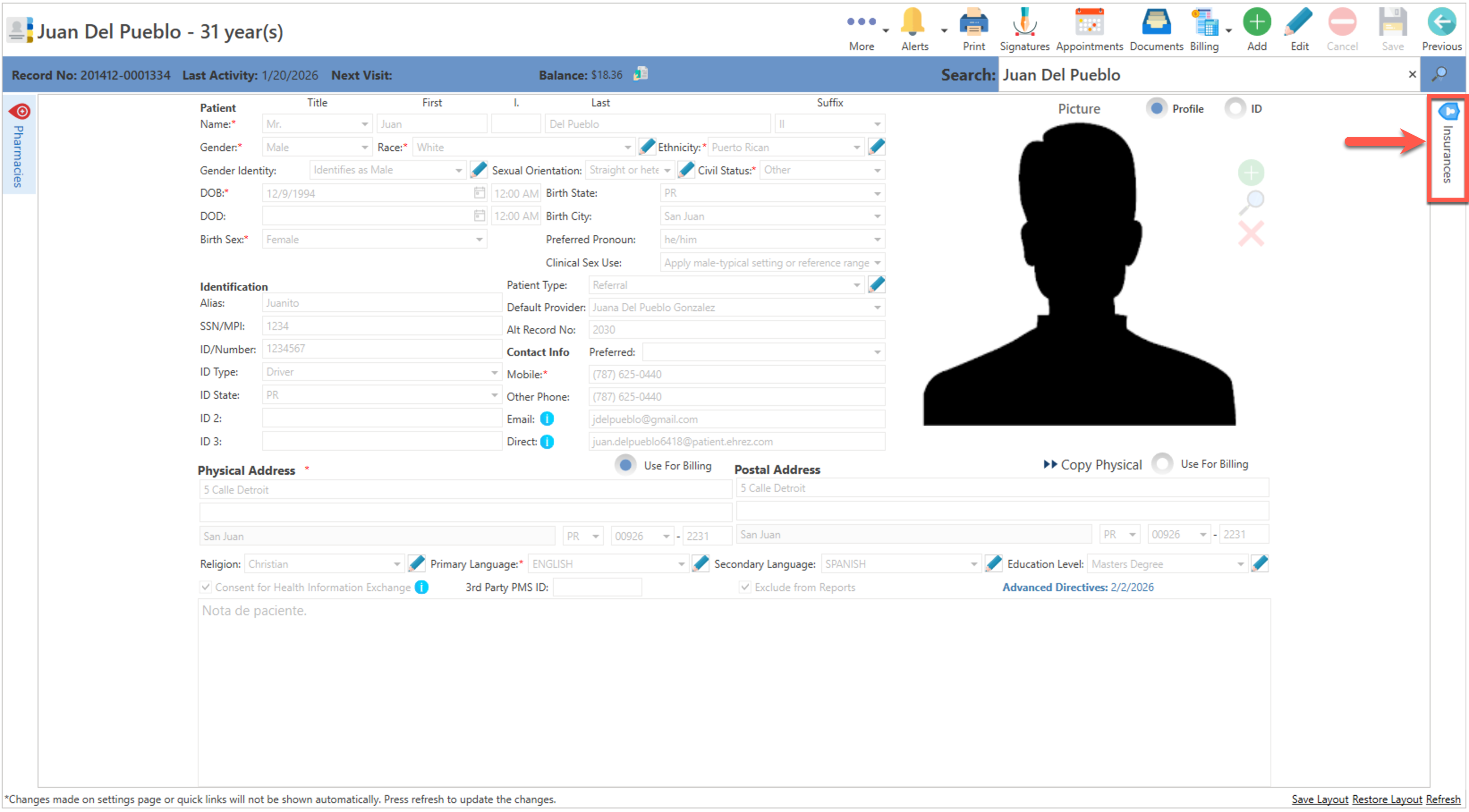 - Seleccione la pestaña llamada "Insurances", localizado en la parte derecha de la pantalla.