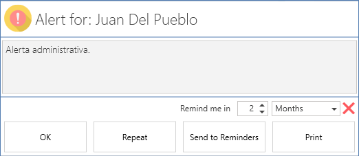 - Press the Send to Reminders button to send the alert to the Reminders section located at the top right of the screen.