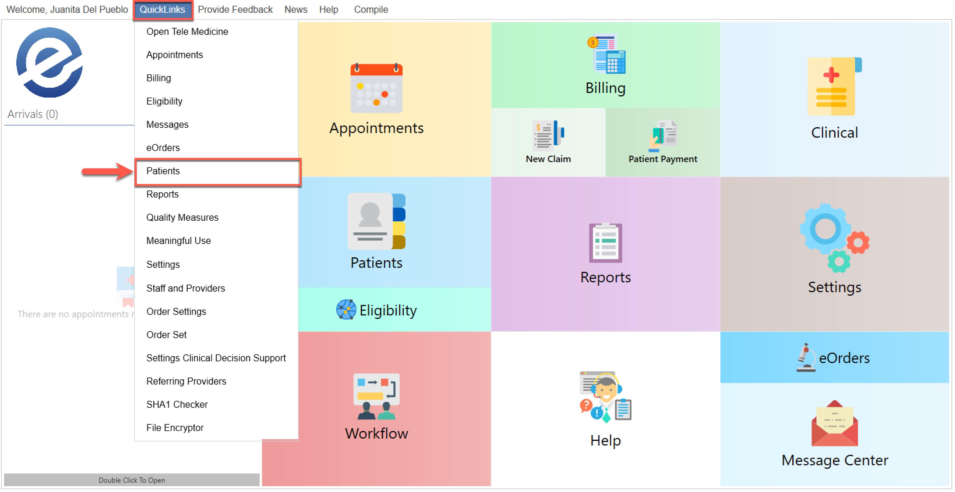 - Busque y seleccione el paciente, al cual desea agregar una farmacia cercana a la oficina, como su farmacia favorita.