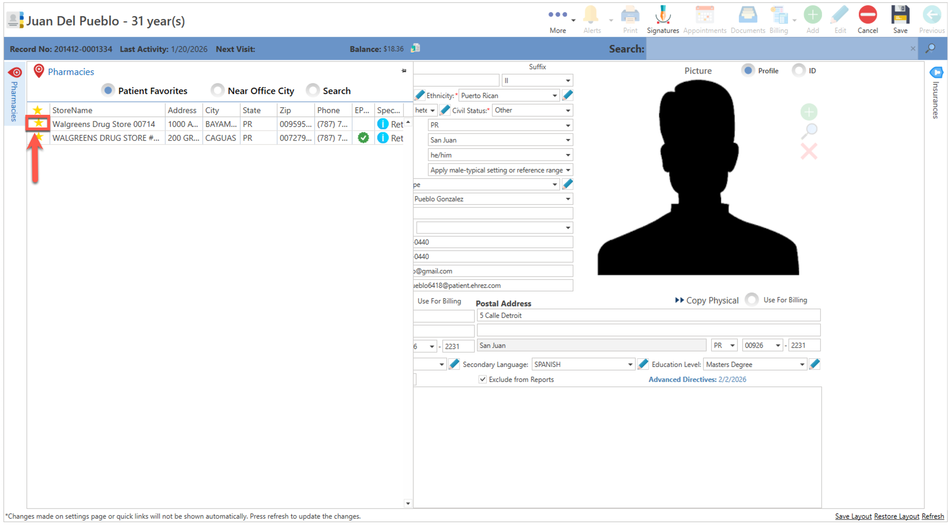 - Seleccione el paciente del que desea eliminar la farmacia favorita.