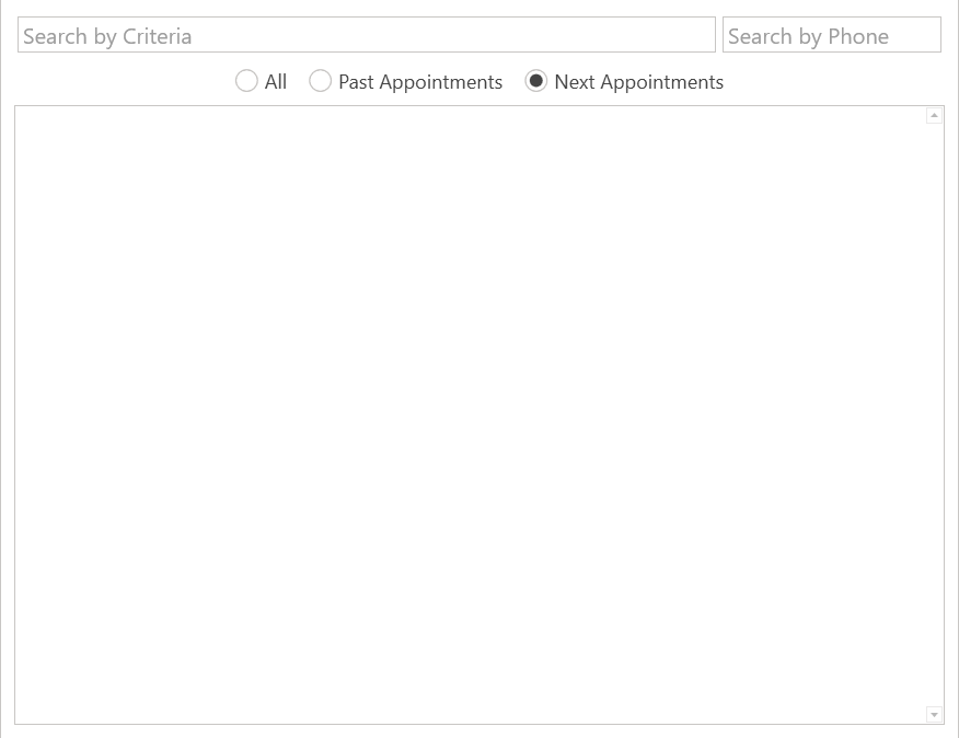 - Past Appointments: Search past appointments only.