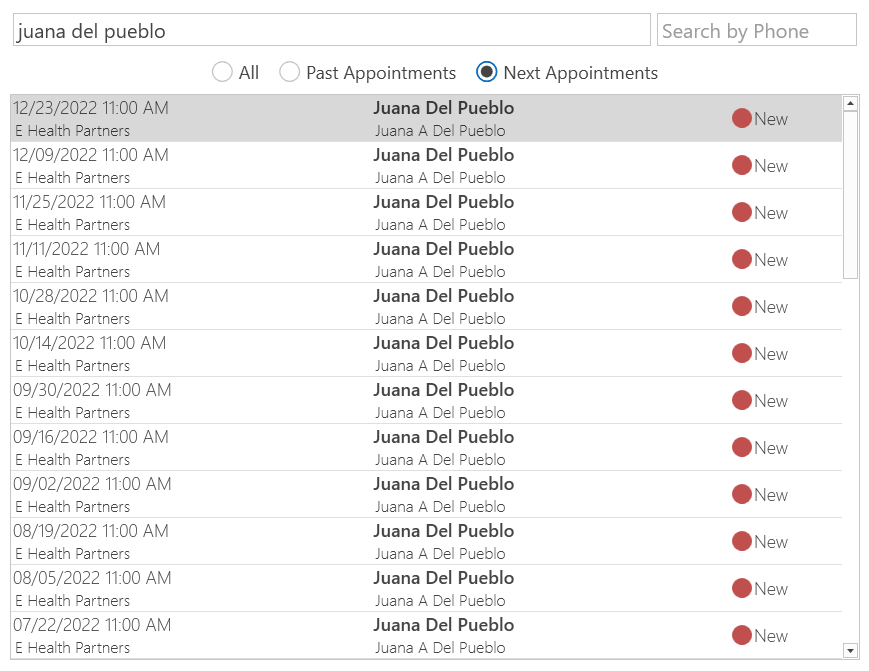 - Next Appointment: Search for future appointments only.
