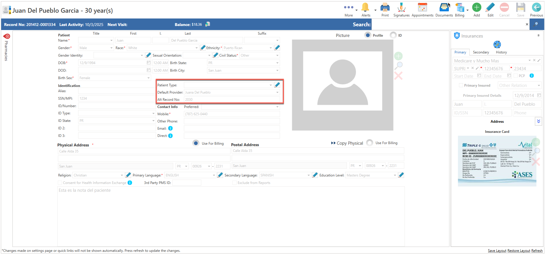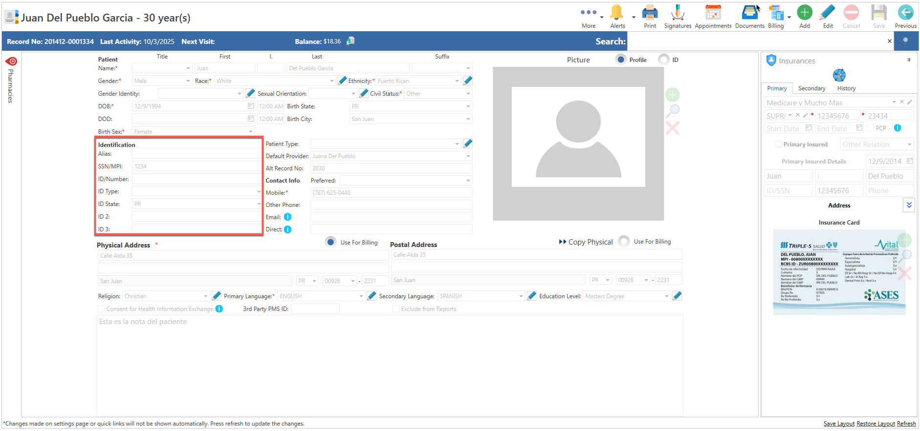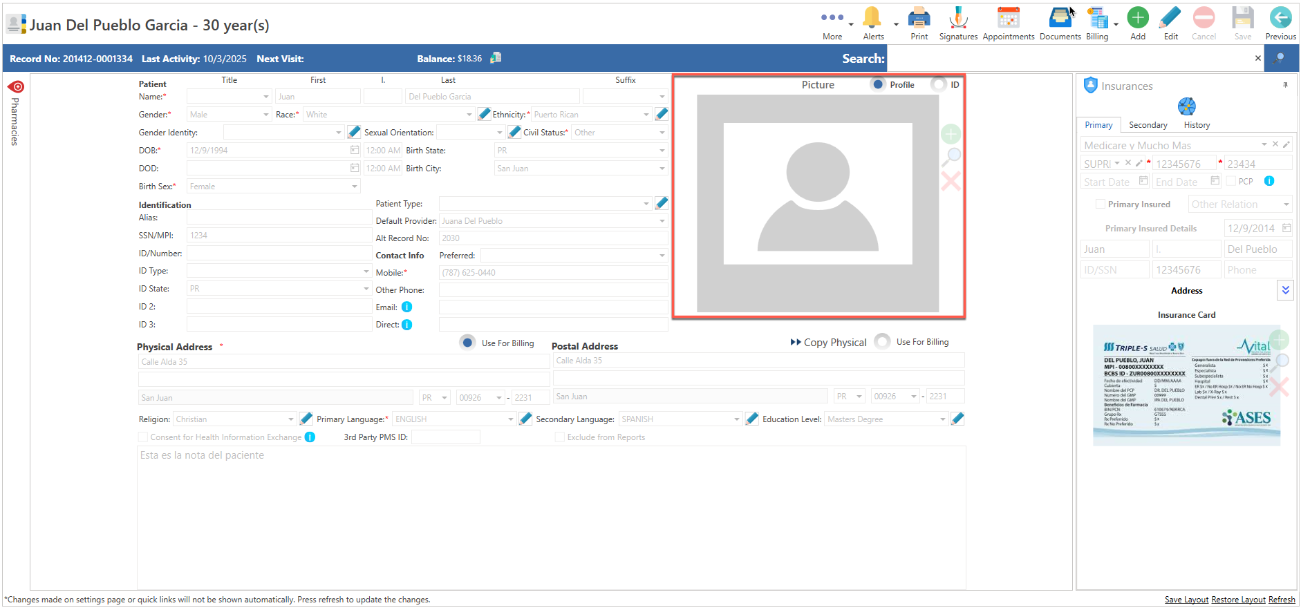- Id Picture: Permite agregar, una imagen del paciente. (Ejemplo: Licencia de conducir.)