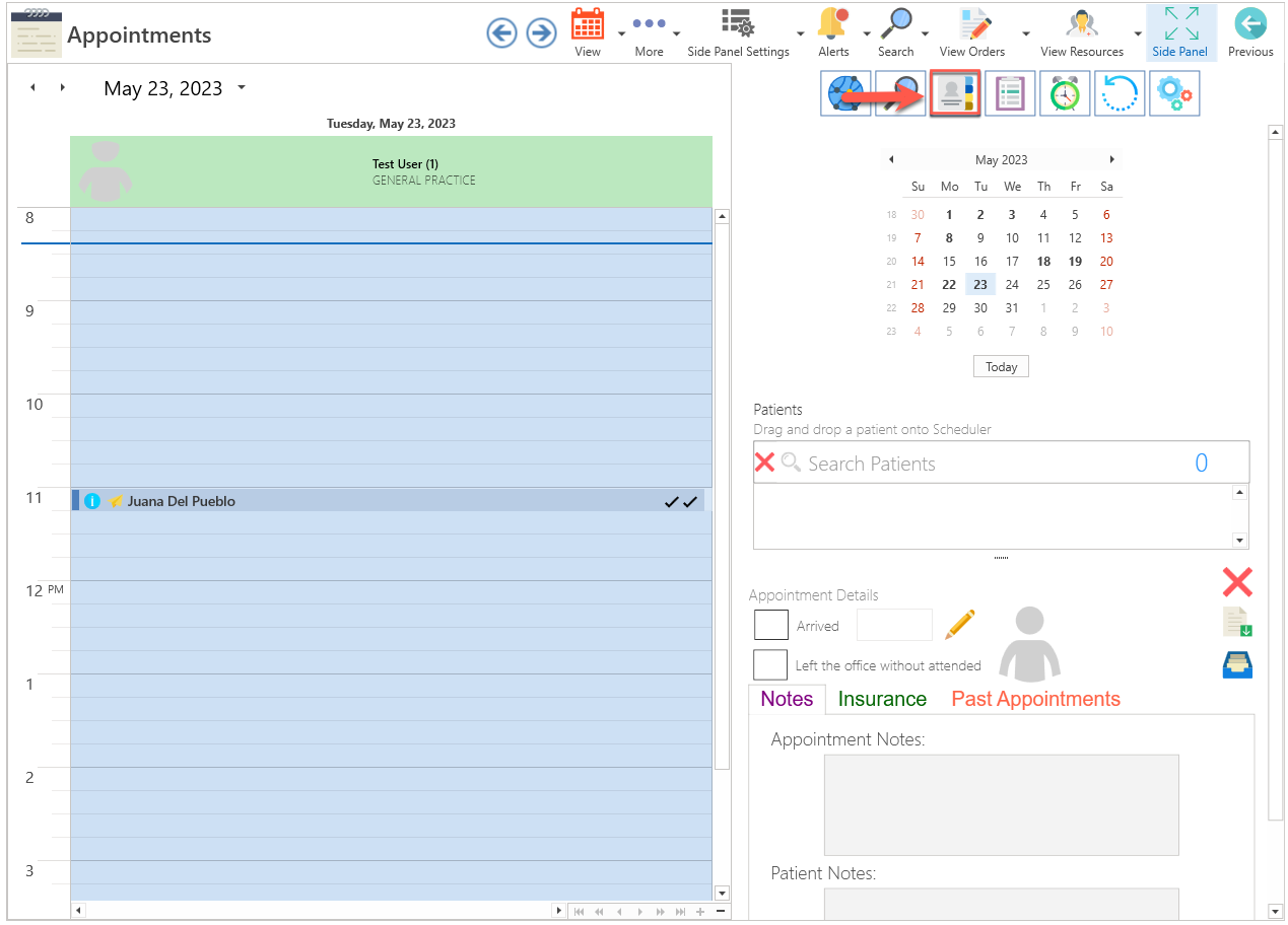 - Next, click on the Patient Details button, which is located on the right side of the screen in the Side Panel section.