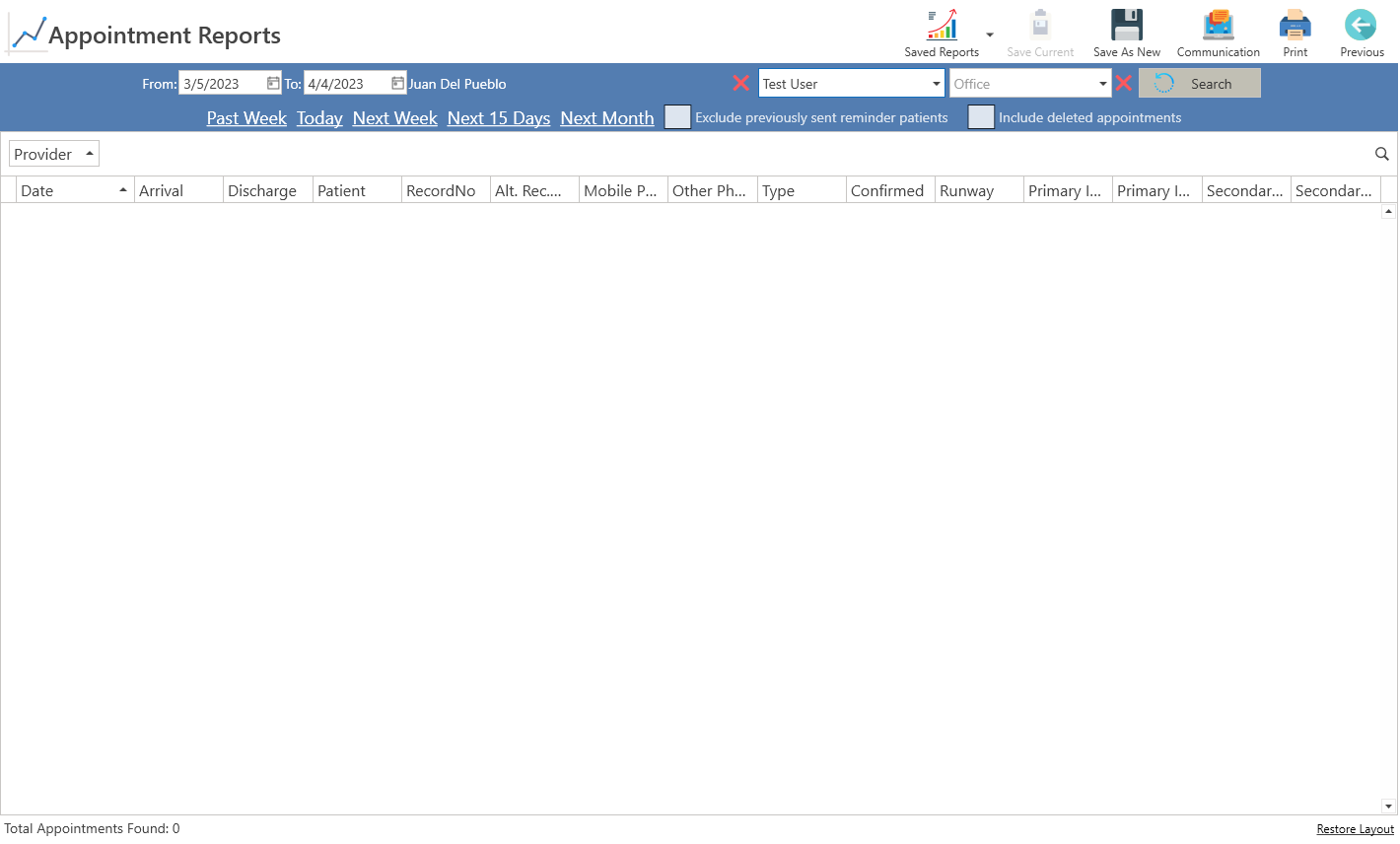 - Past Week: Display the report showing past appointments set up from the previous week.