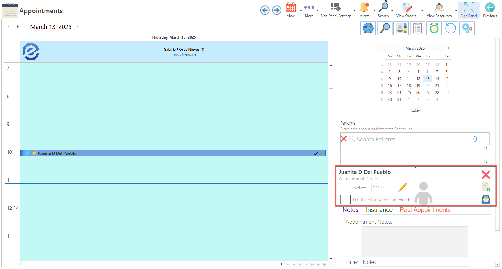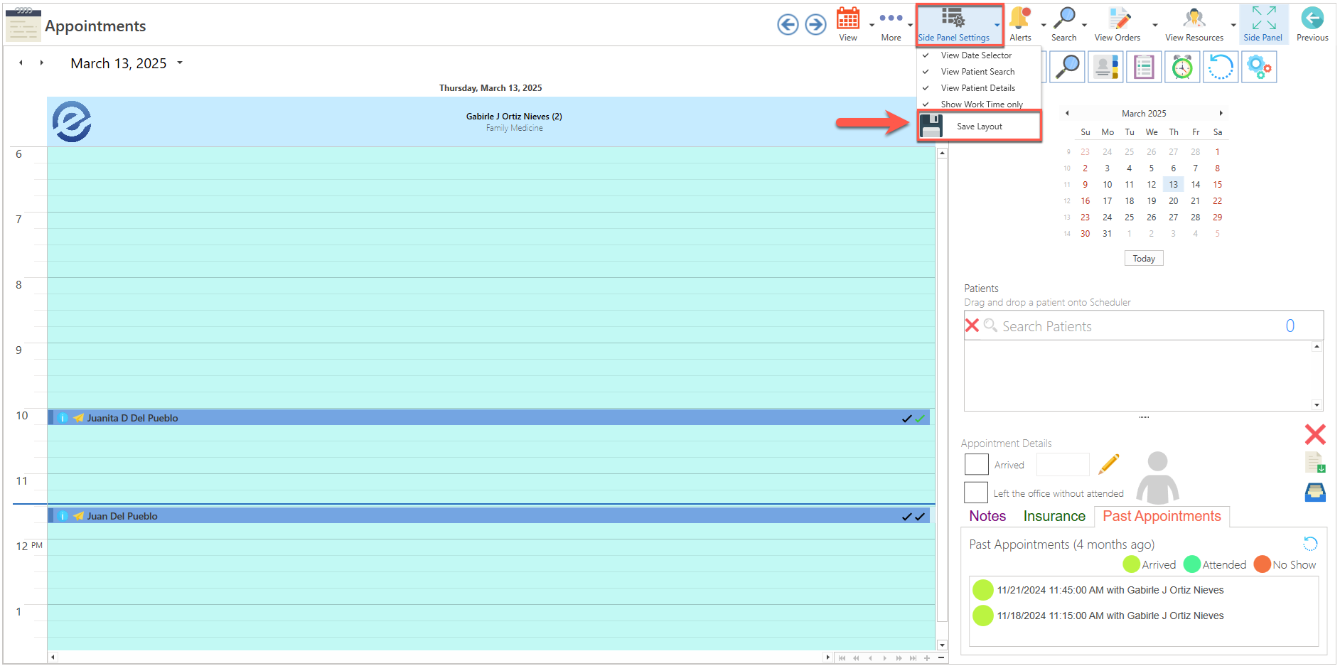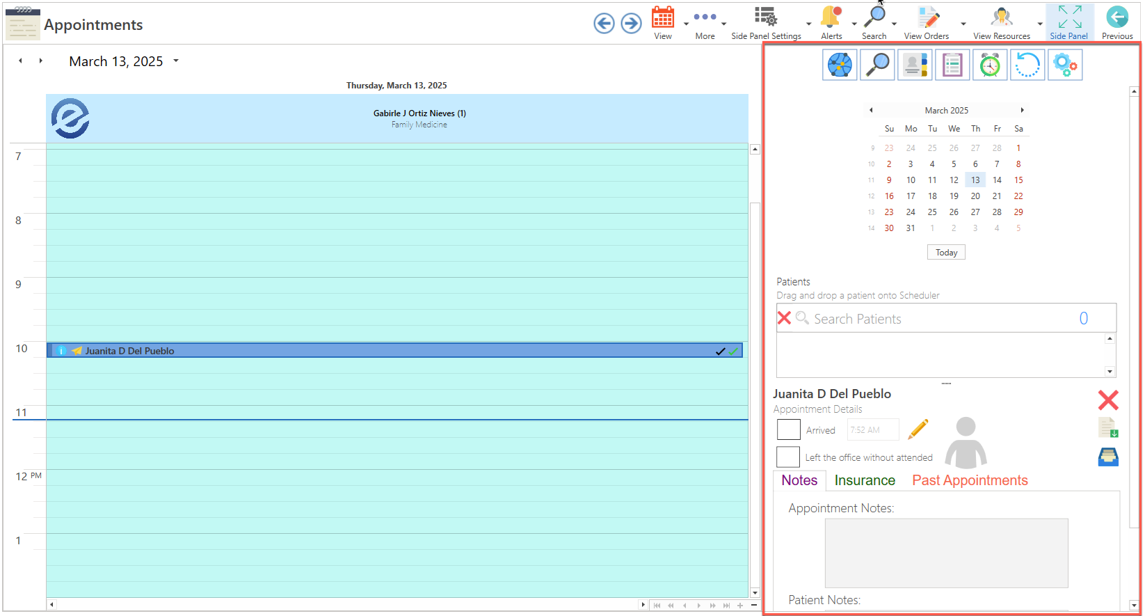 - Once in the Appointments screen, click on the Side Panel Settings button located at the top of the screen in order to manage the Side Panel section.