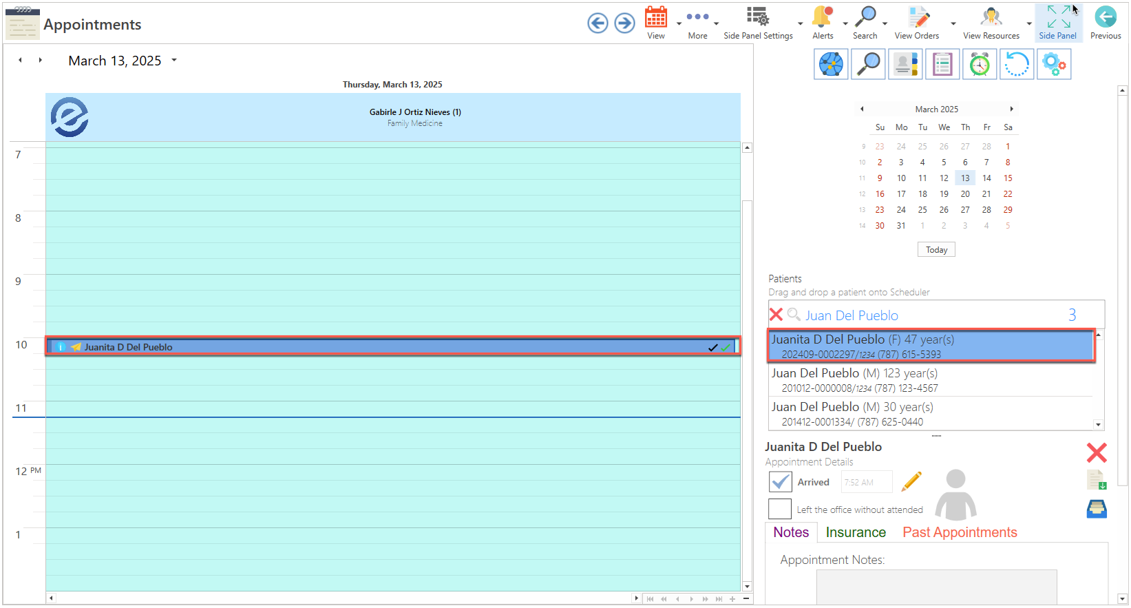- Arrived: Choosing this option signifies that the patient has arrived at the office. Similarly, it serves as a method to check the patient's arrival by merely selecting this option on the calendar.