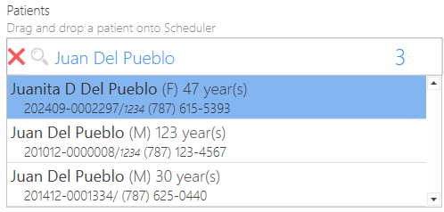 - View Patients Search: Selecting this option will display the Patients section, allowing for the search and drag-and-drop of patients into the scheduler.