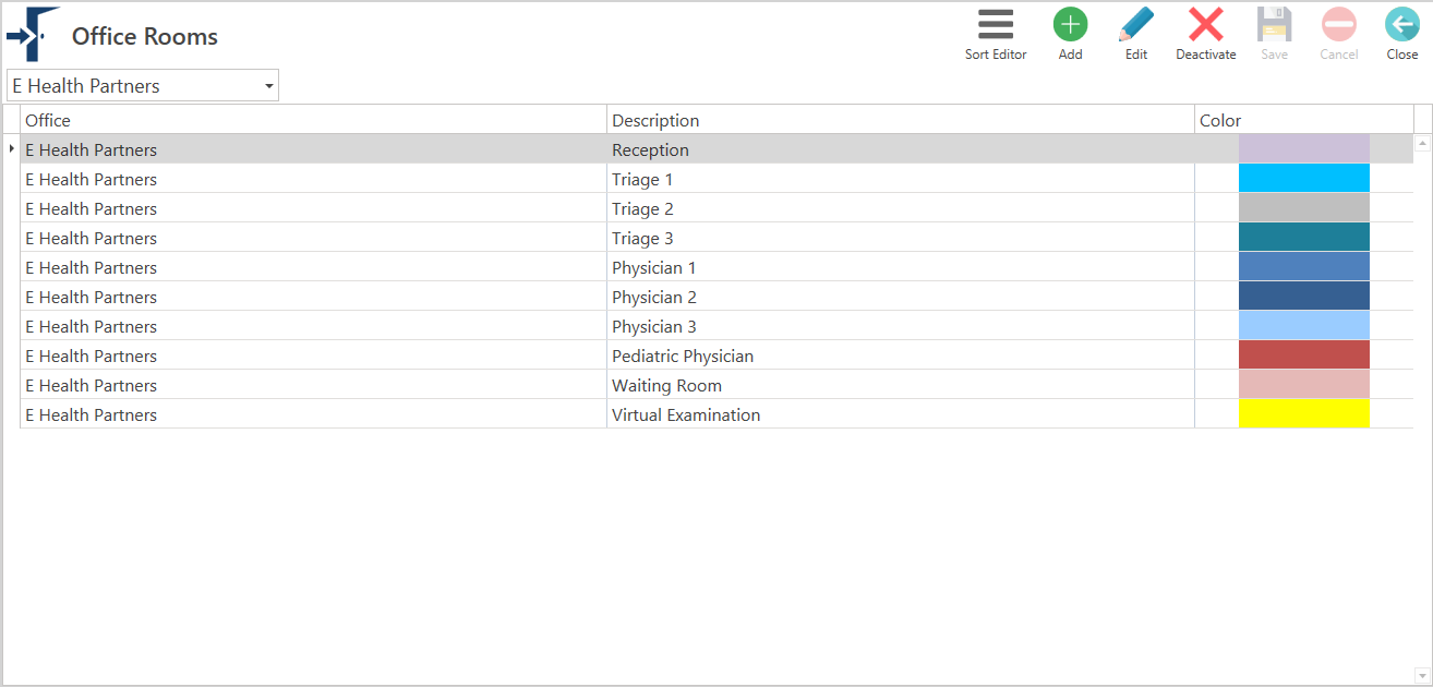 - Rooms: Modify or include the names of examination rooms you wish to make available for assignment.
