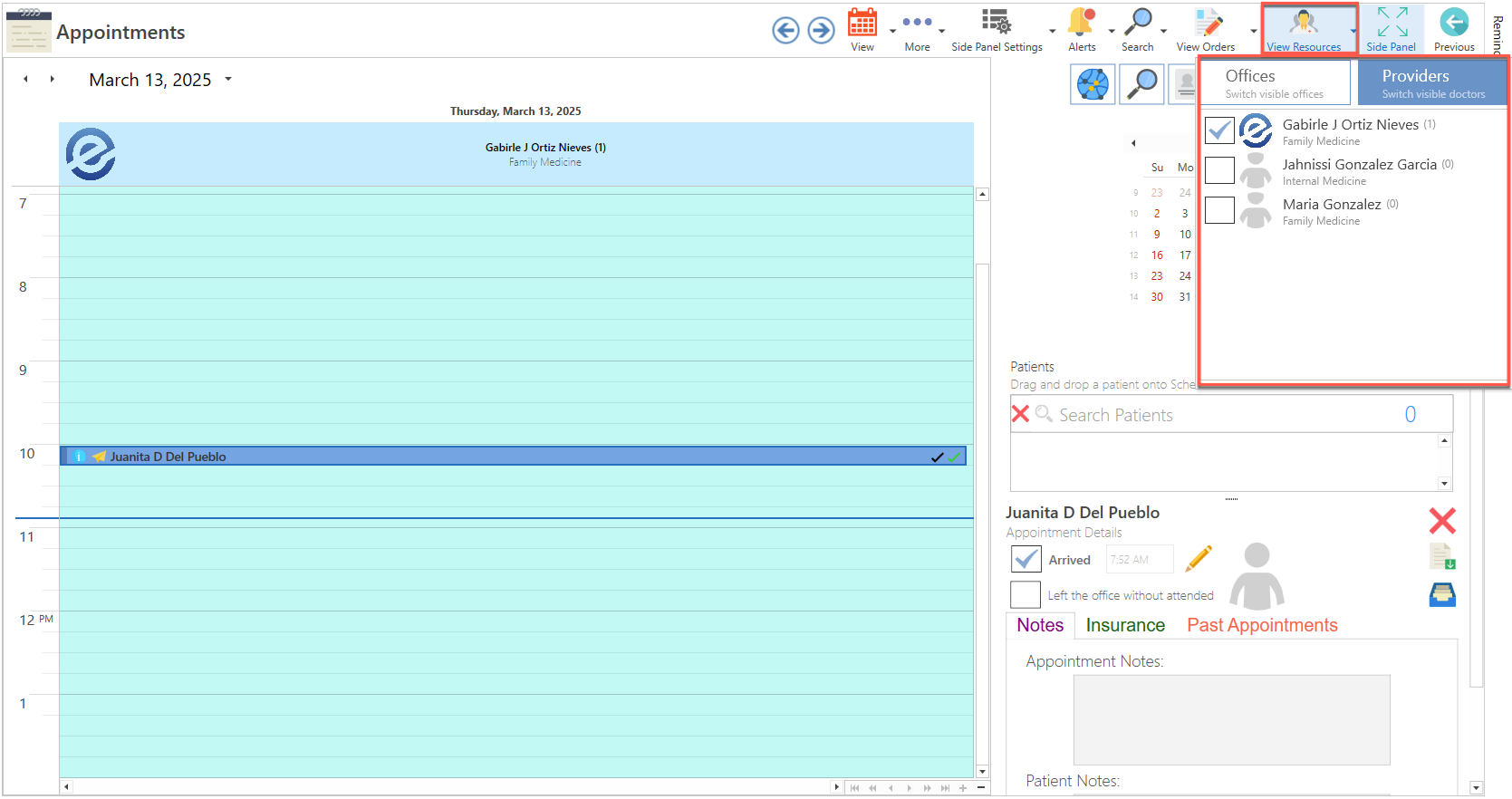 - Once in the Appointments screen, click on the More button located at the top of the screen and select the Providers option. The Providers list will be automatically displayed.