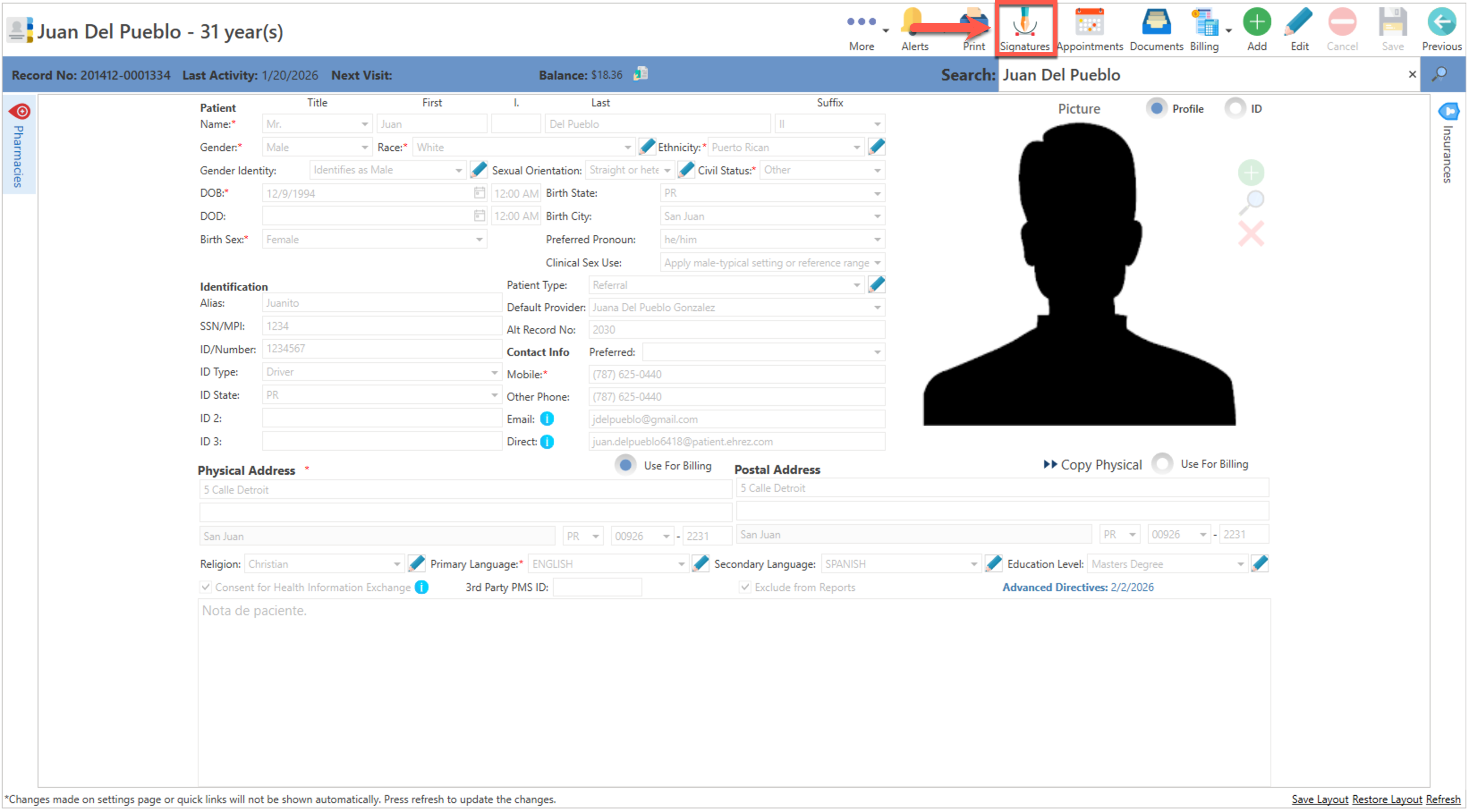 - Indique al paciente que registre su firma en el "Signature Pad", conectado a la computadora.