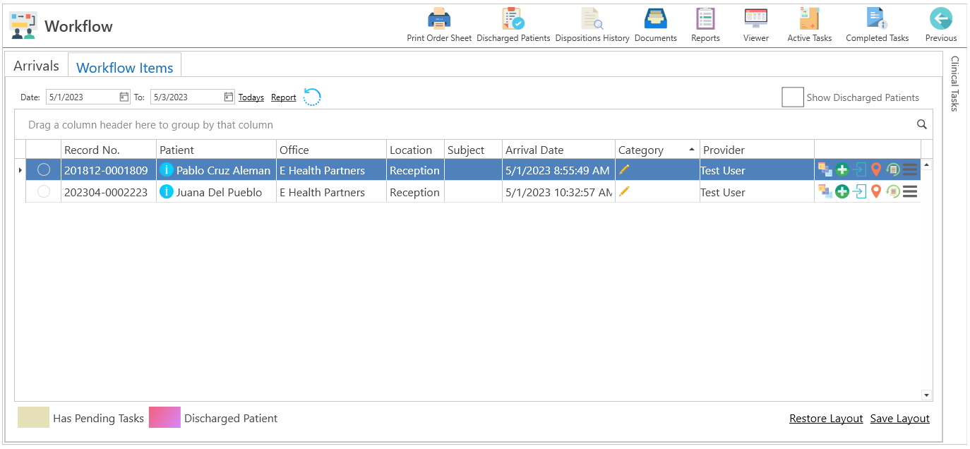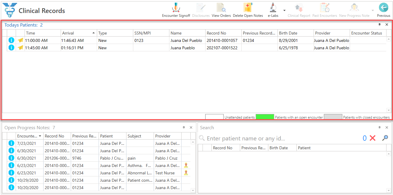 - Selecting the Arrived At checkbox in the appointment details will display the provider on the Clinical Records screen and in the Arrivals column of the main menu.