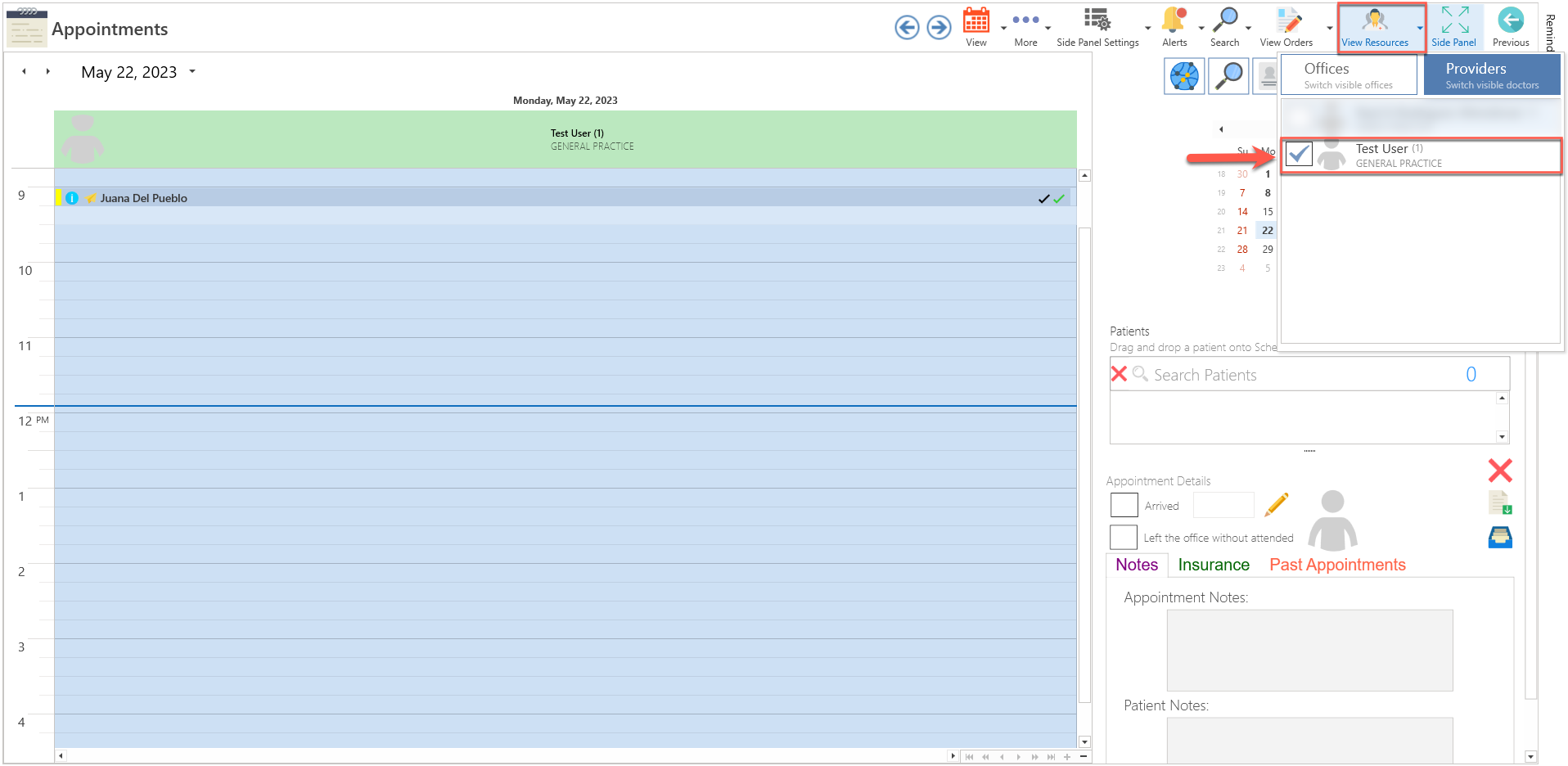- Choose the provider from the list if the patient will be seen by a different provider.