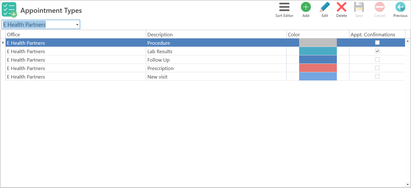 - To create a new appointment type, click the Add button located at the top of the screen.
