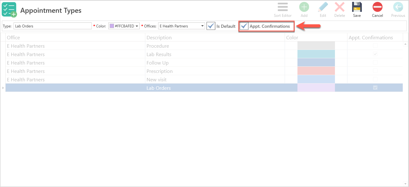 - To have a specific appointment type automatically displayed when creating an appointment, ensure to select the Is Default checkbox.