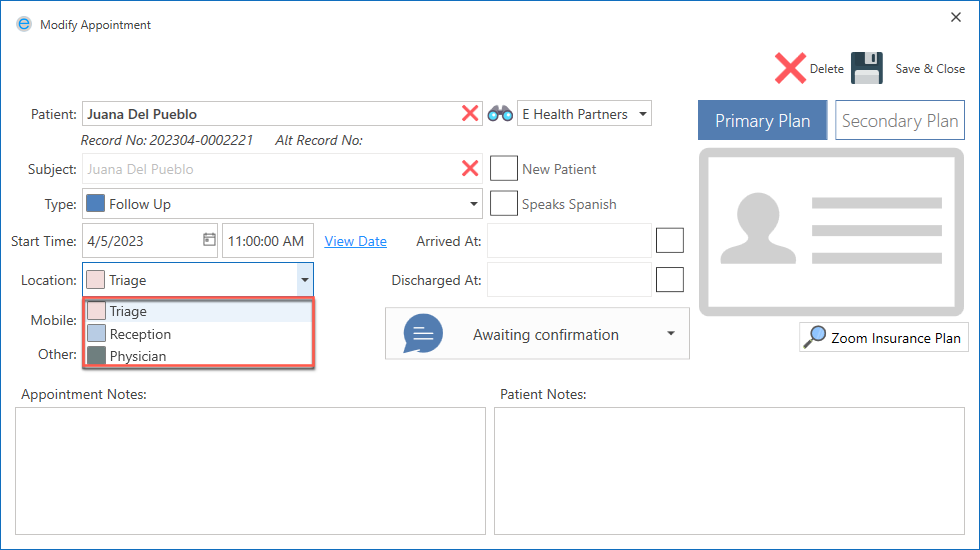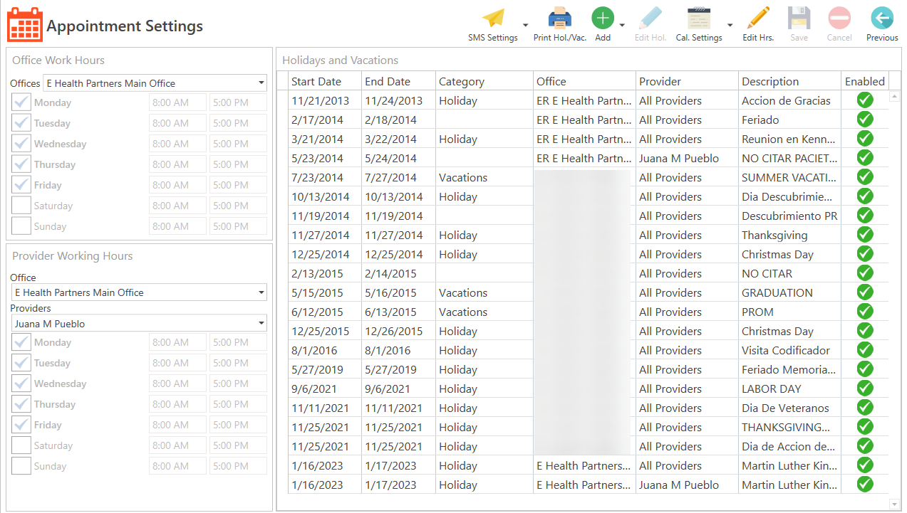 - The days configured on this screen will be displayed in the Location field when creating an appointment.