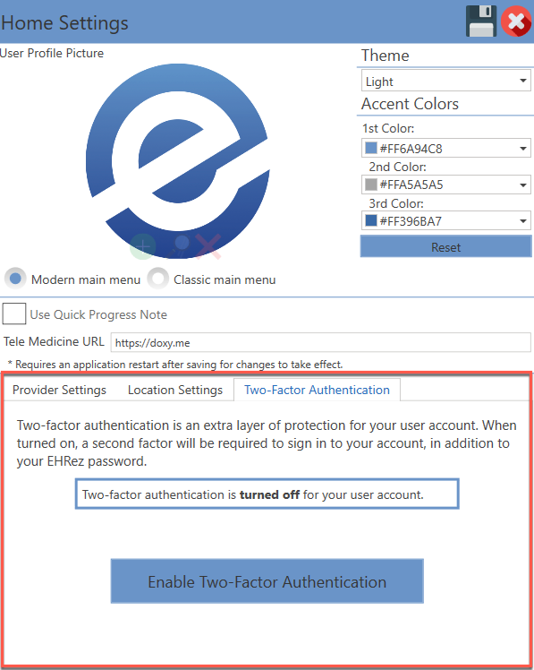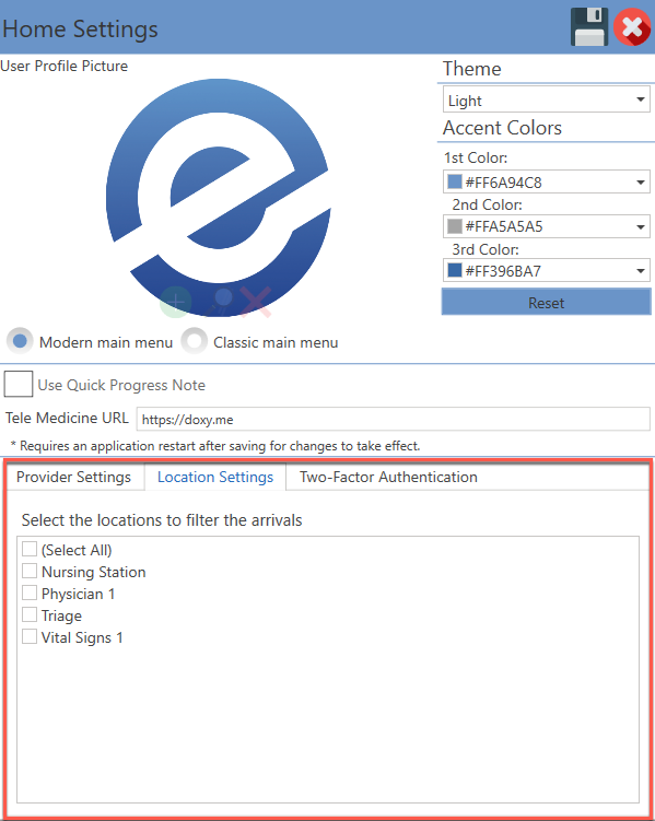 - Tele Medicine URL: Espacio para ingresar el URL (Uniform Resource Locator) necesario para acceder al programa de telemedicina.