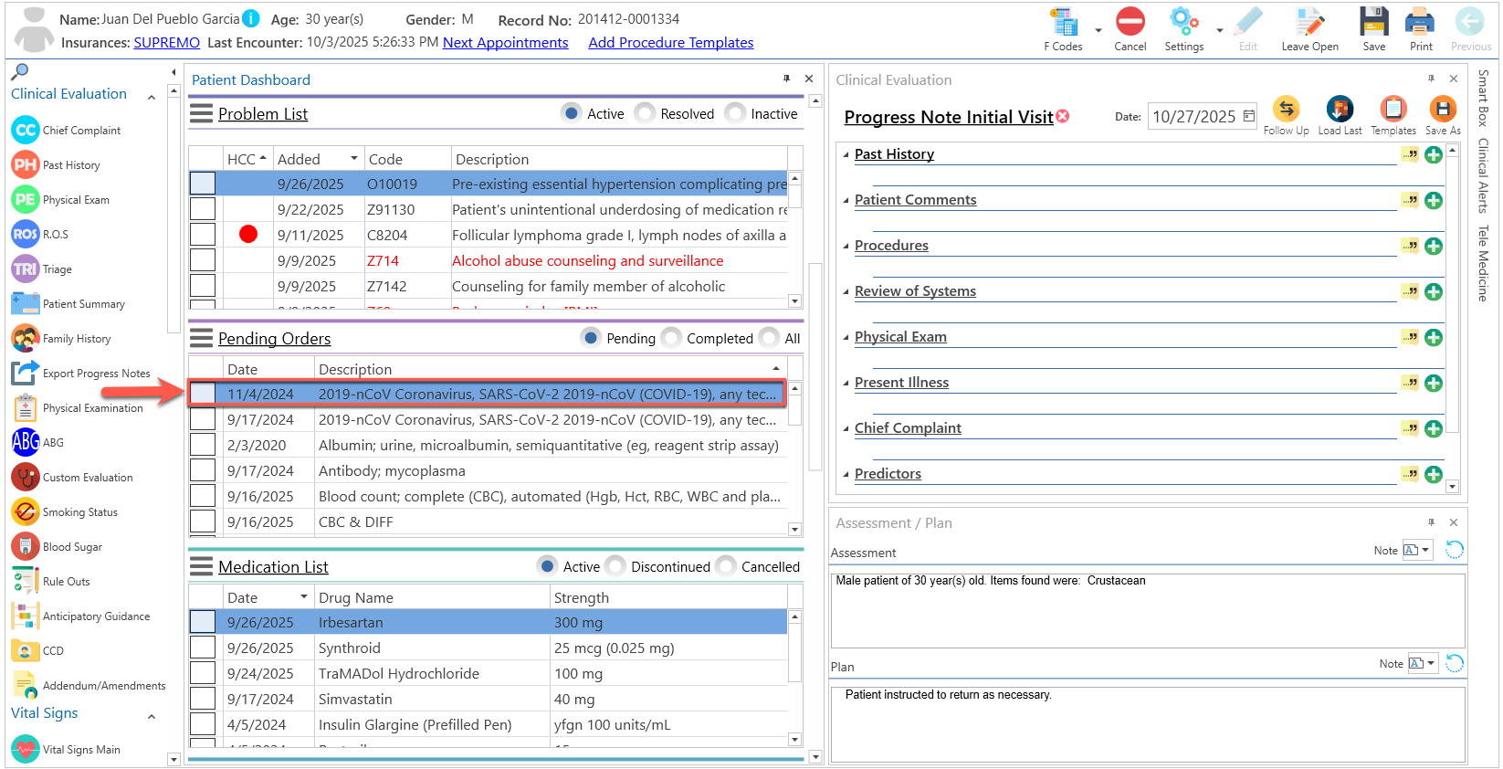 Nota: Si el proveedor no guarda la nota de progreso, podrá continuar editando la misma, con solo presionar dos veces sobre el paciente.