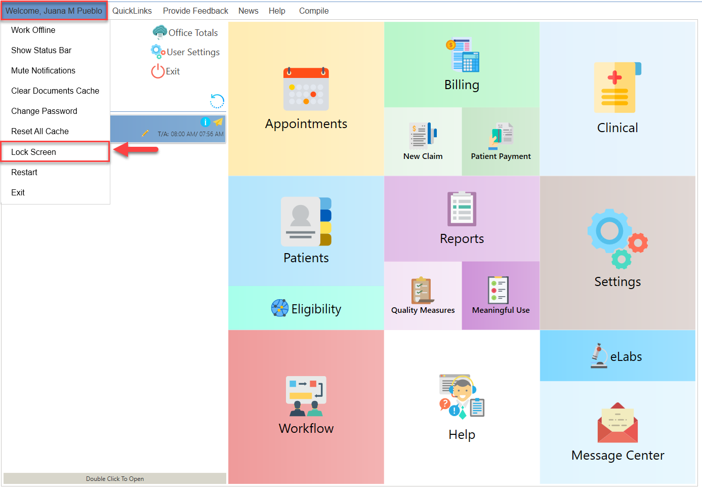 - En el menú principal, presione sobre el texto de "Welcome", localizado en la parte superior izquierda de la pantalla.