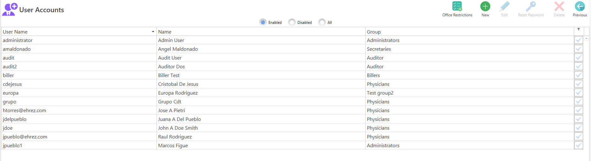 - Disabled: Al seleccionar, desplegará la lista de los usuarios inactivos.