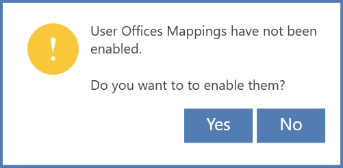 - Office Restrictions: Al presionar, se desplegará la pantalla de "User Office Mappings", para configurar las restricciones de las oficinas.
