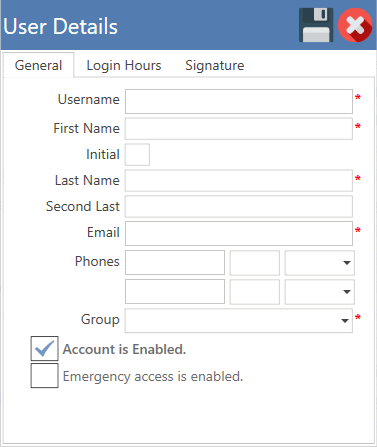 - Account is Enabled: Si esta opción está seleccionada, significa que el usuario tiene acceso al sistema. Si no está seleccionada, significa que el usuario está desactivado y no podrá acceder a el sistema.