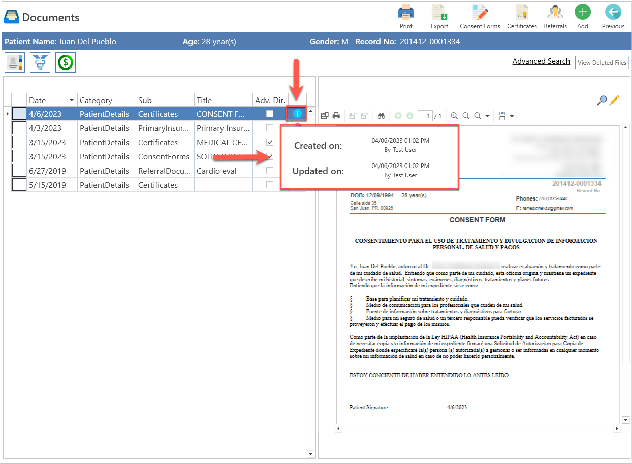- Likewise, you will be able to visualize and identify date, time and user of the person who registered and/or updated it.