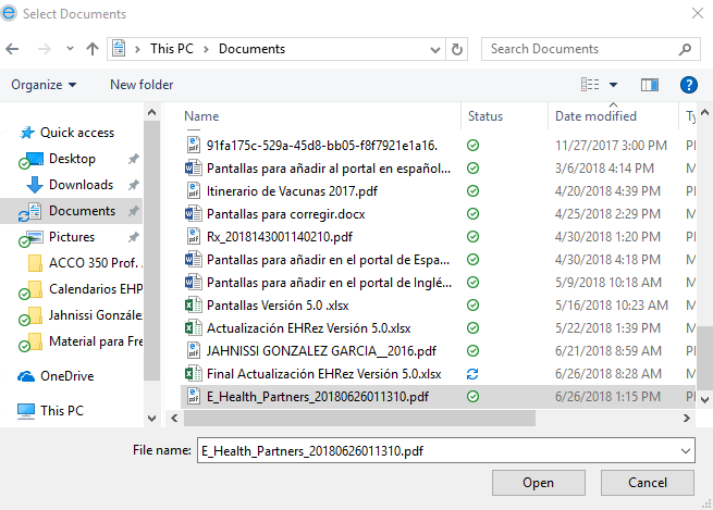 - After identifying the document, click the Open button.