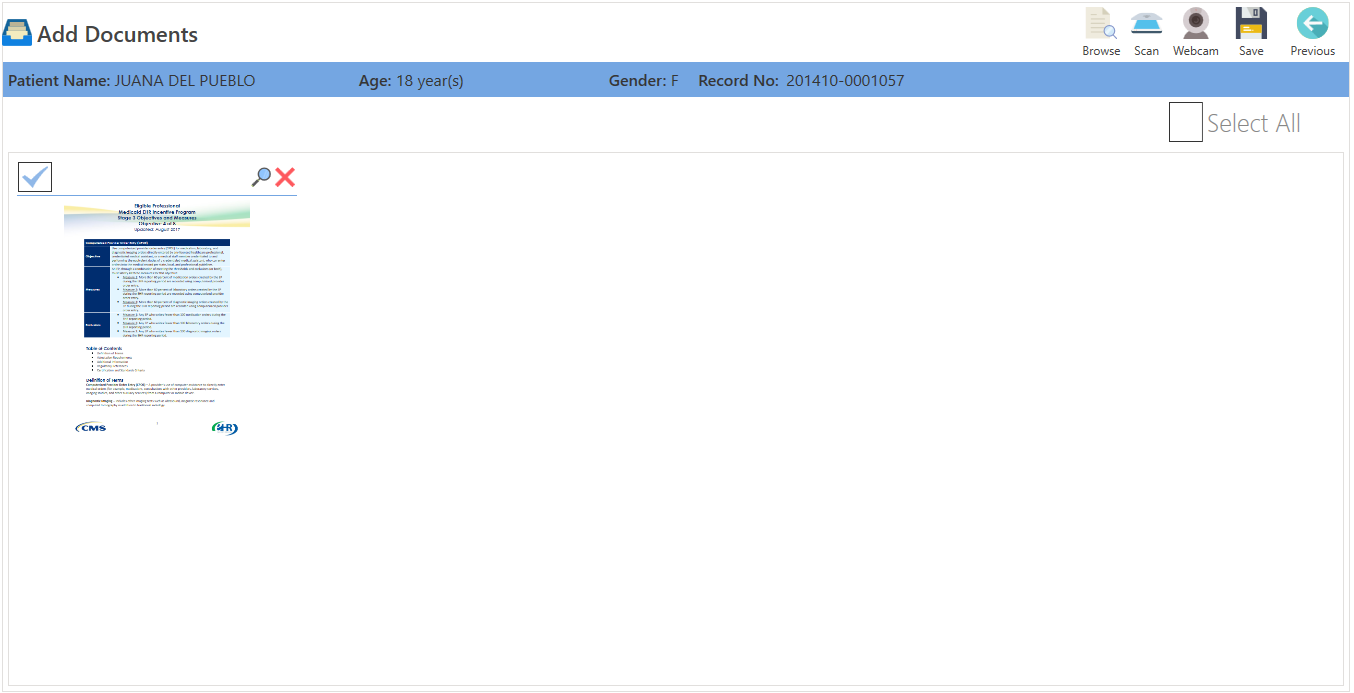 - Find the patient to whom you want to save the document.