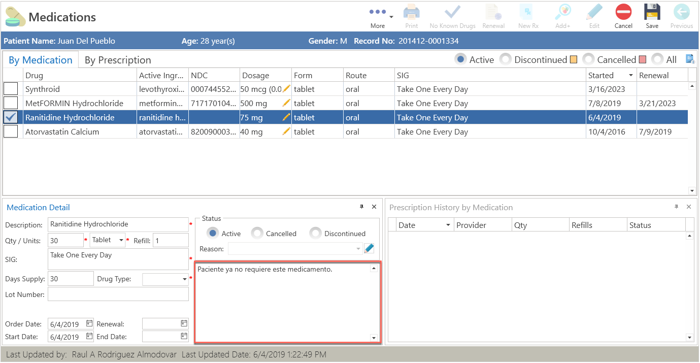 Existen varias opciones, para descontinuar o cancelar medicamentos del paciente.