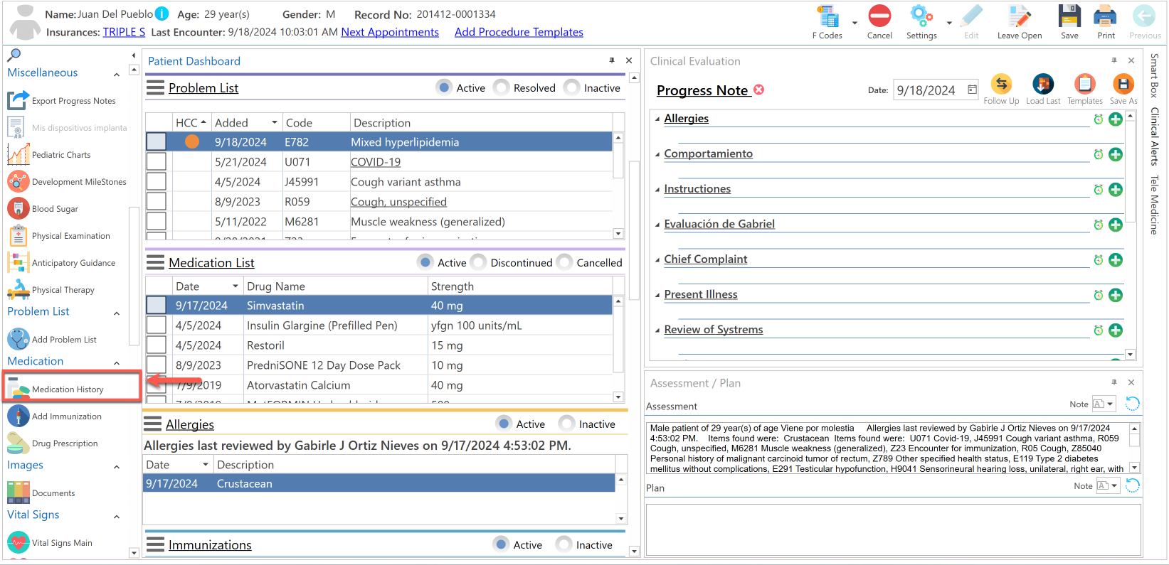 - Conociendo el área de: Advanced Progress Note / Medications History