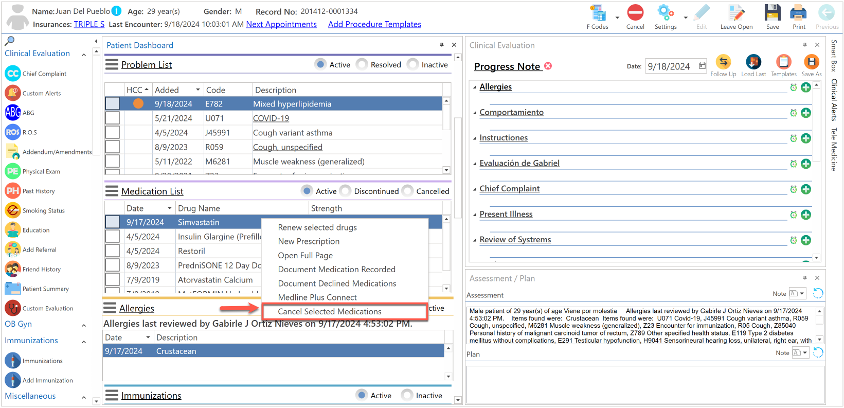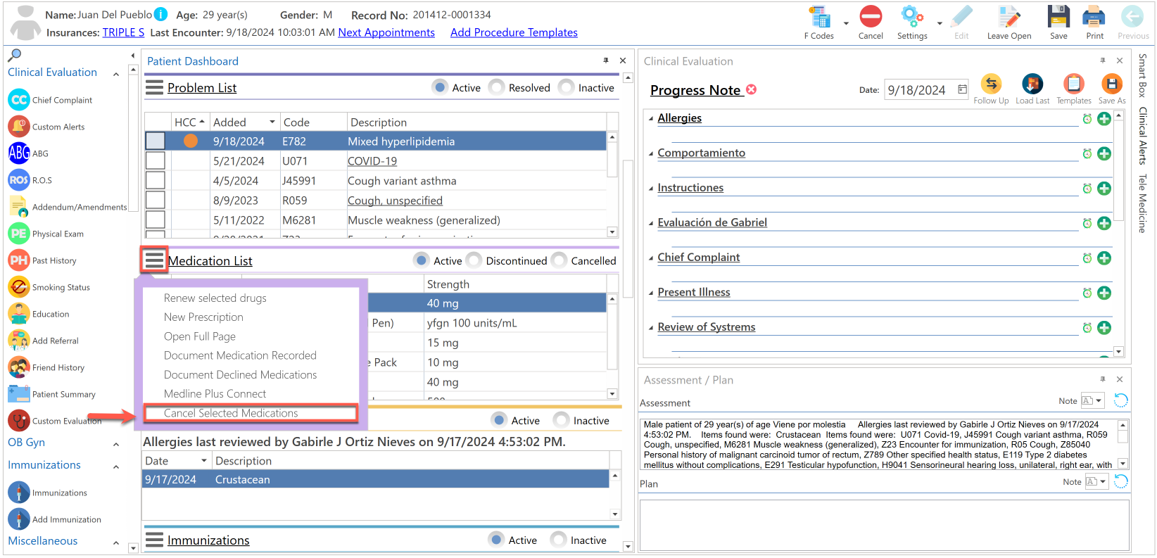 - Una vez seleccionado, presione el botón derecho del "mouse" y seleccione la opción de "Cancel Selected Medications". (Nota: Podrá seleccionar múltiples medicamentos, para cancelar.)