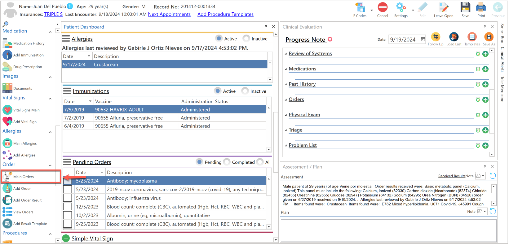 - Presione el enlace de "Pending Orders", localizado en la sección del "Patient Dashboard".